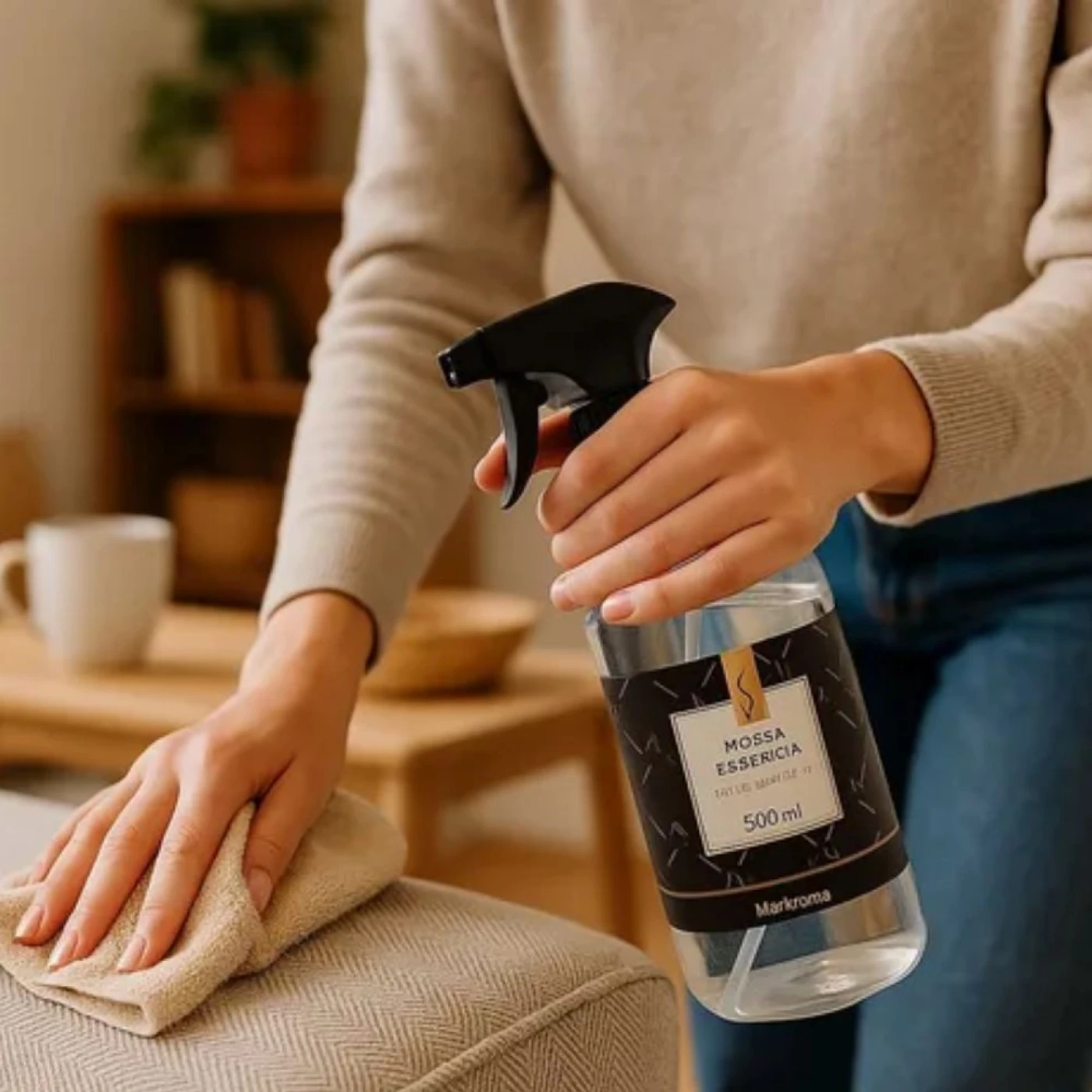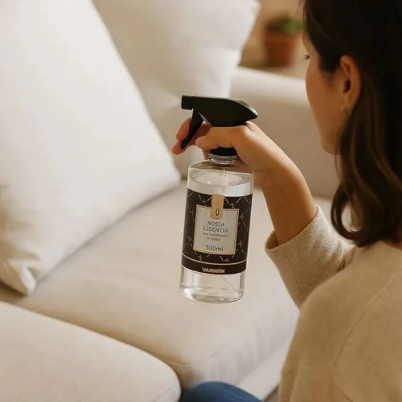 Em cortinas, borrife com a janela aberta para o aroma se espalhar.