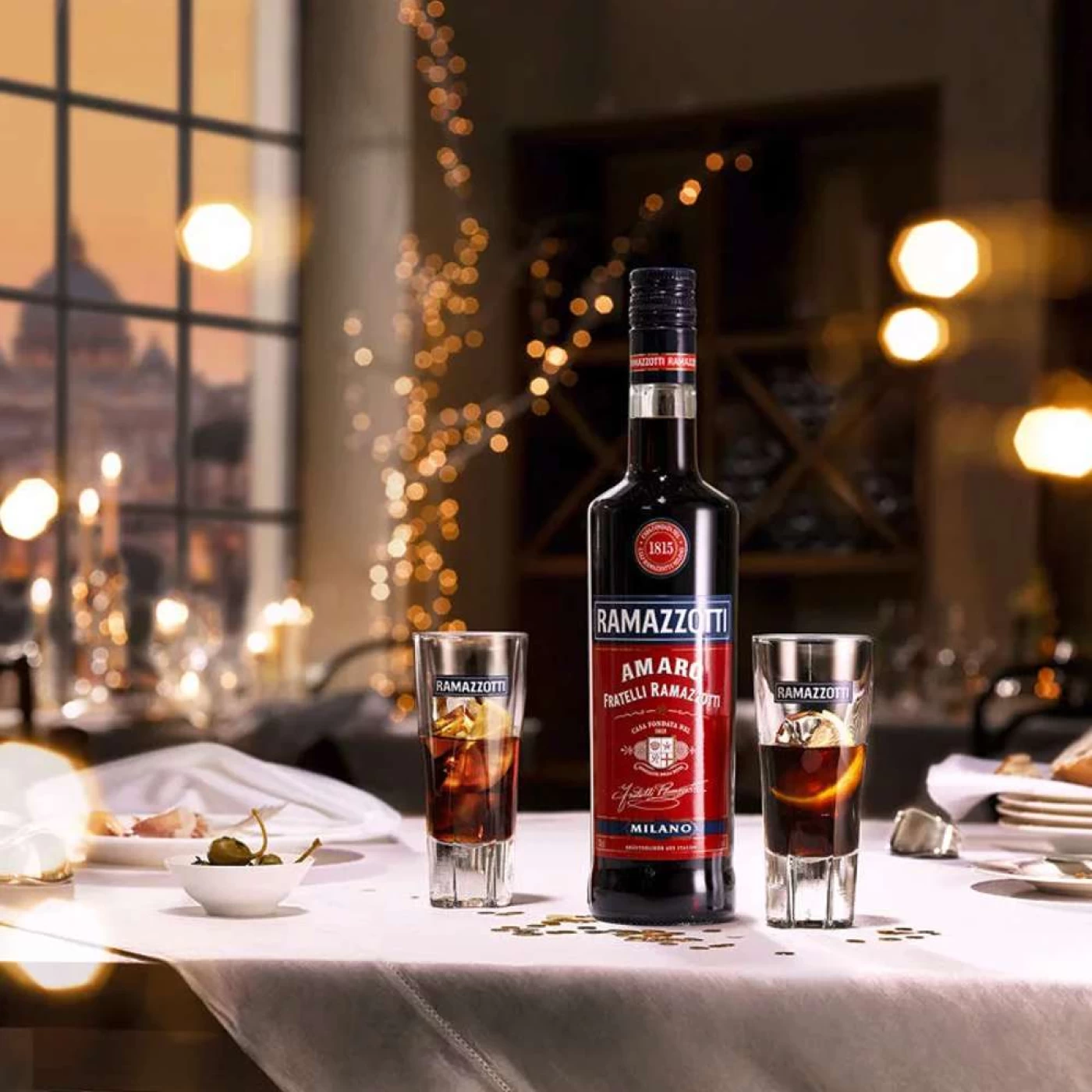 Amaro Ramazzotti é um aperitivo super premium natural, feito a partir de uma mistura tradicional de 33 ingredientes de todos os lugares do mundo: ervas, temperos, flores e frutas combinadas para produzir um sabor perfeitamente intenso e harmonioso, sem qualquer corante ou aroma artificial. Sua receita é mantida em segredo há mais de 200 anos. Pode ser apreciado puro ou misturado, nosso Amaro é para aqueles momentos que vão te fazer dizer "Bella la vita".