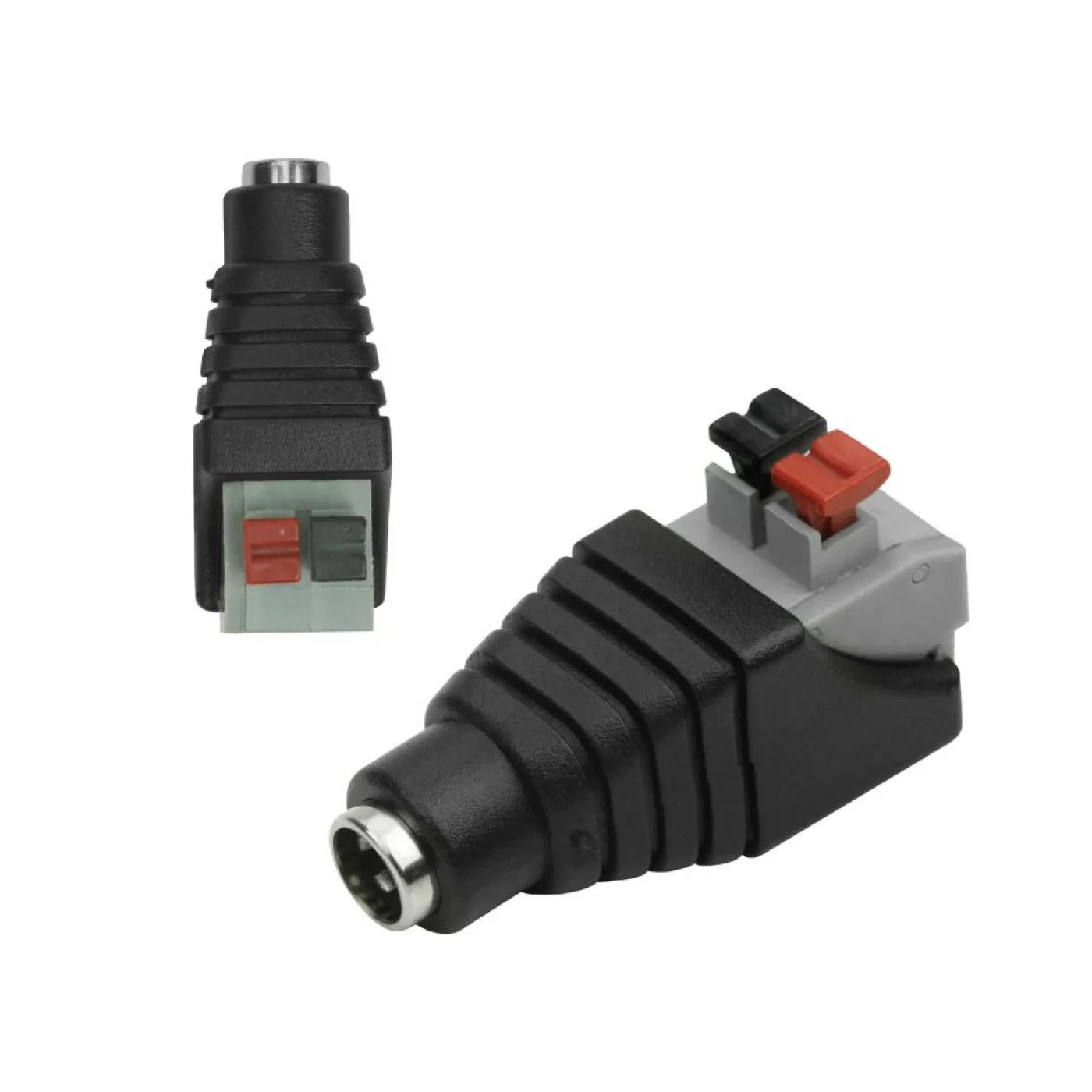 O conector J4 fêmea com borne 2.1 / 5.5mm e engate rápido é utilizado para fornecer energia a dispositivos eletrônicos, como câmeras de vigilância, equipamentos de áudio, iluminação LED, entre outros.