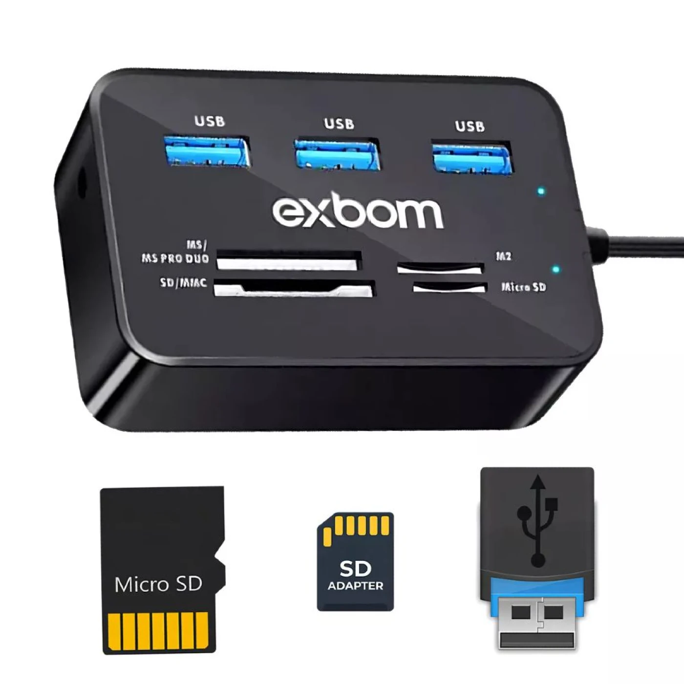 Em resumo, o Hub USB 2.0 com Leitor de Cartão 7 em 1 Exbom - Uh-r230 é uma solução completa para as suas necessidades de conexão e transferência de dados. Não perca a oportunidade de ter um dispositivo tão útil e eficiente ao seu alcance.