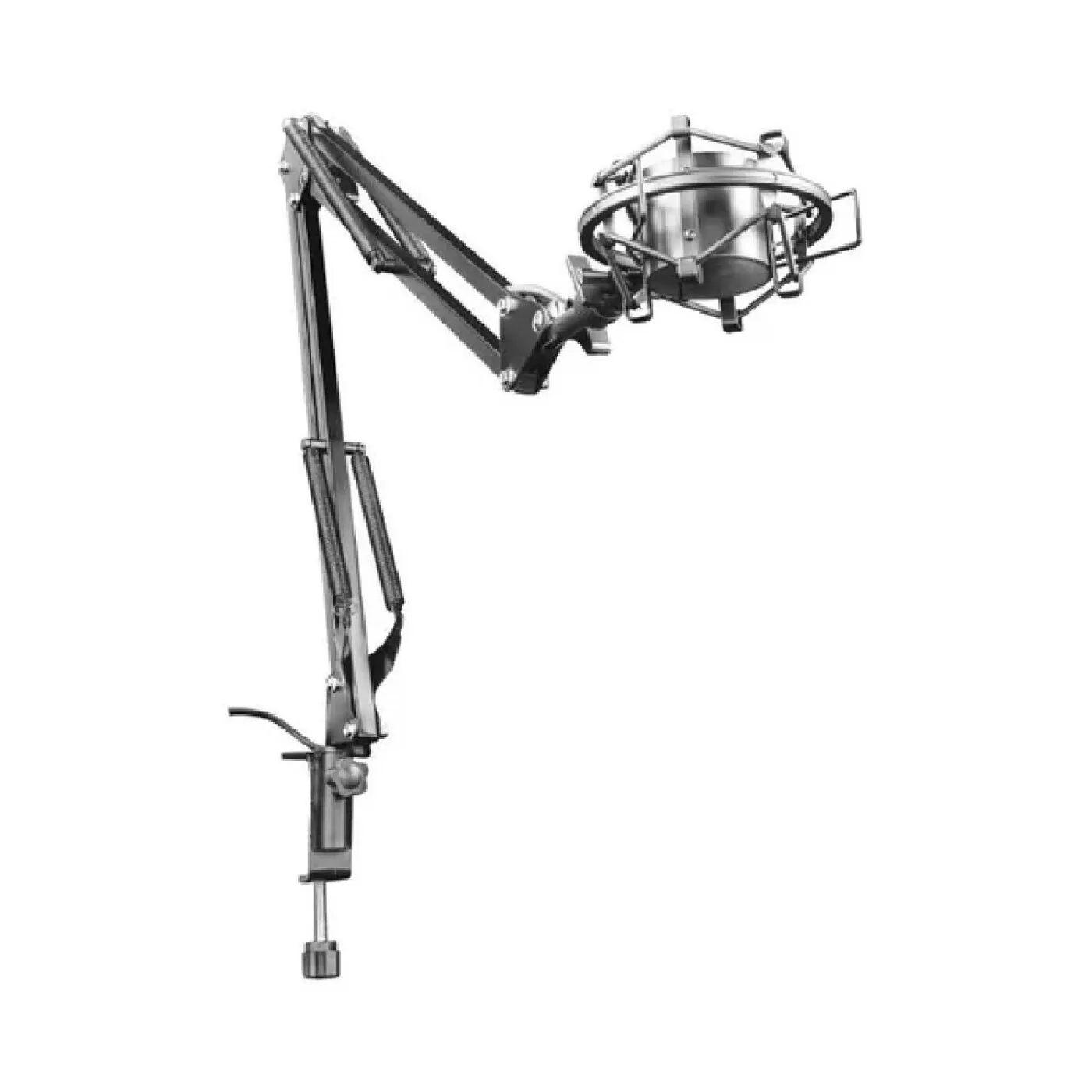 Braço ajustável de montagem em secretária para colocar o microfone na posição mais conveniente durante o vlogging ou transmissões em fluxo