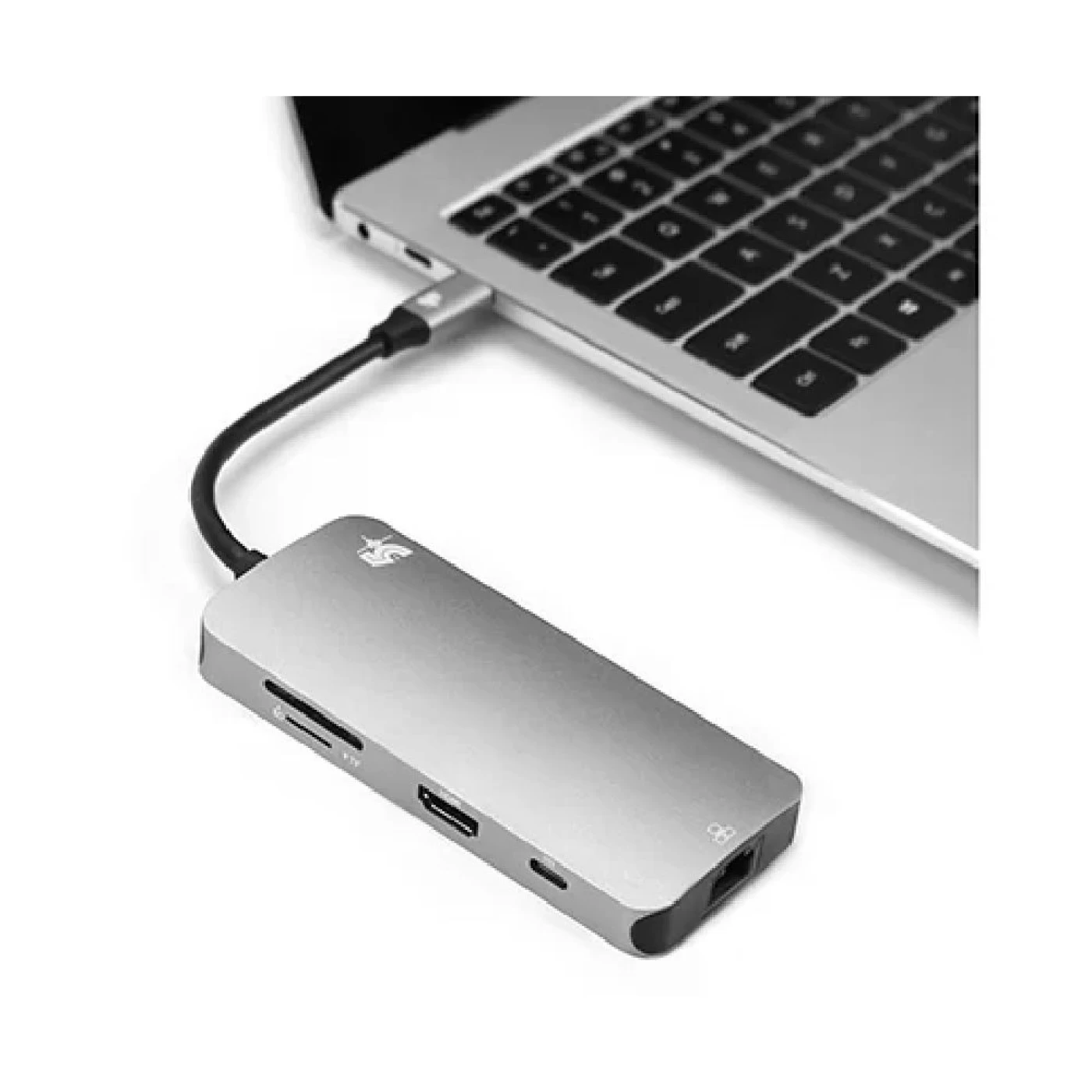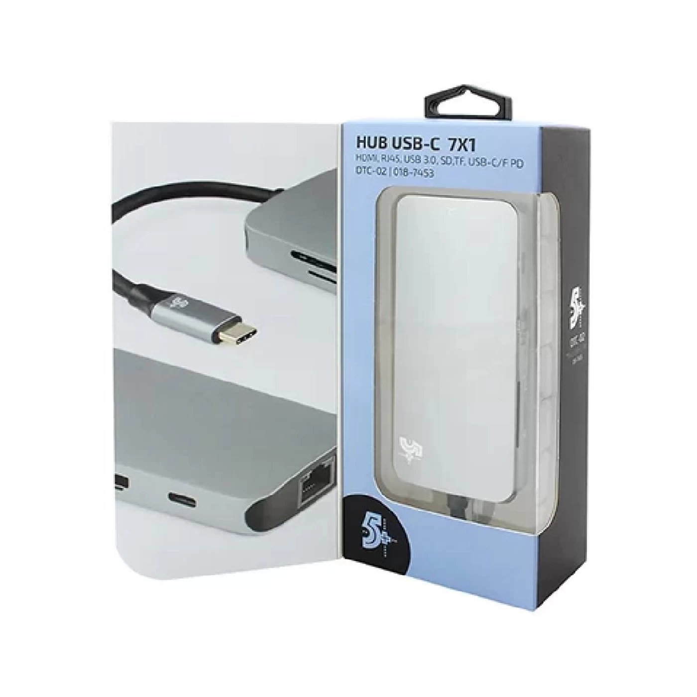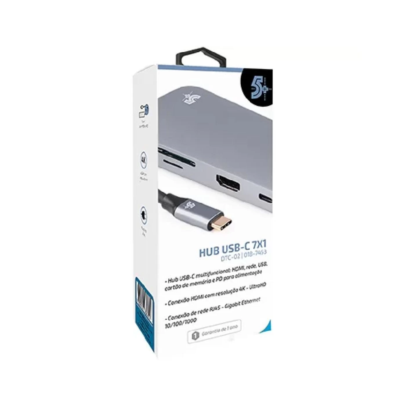 Expanda a capacidade de entradas no seu Notebook, PC ou smartphone (confira compatibilidade) com o HUB USB 018-7453. Compacto, elegante e alta durabilidade com o corpo em alumínio. Conecta com o USB-C e possui entradas USB 3.0 e C, HDMI, reproduz resoluções até 4k, Rede RJ45, leitor de cartões SD e micro SD