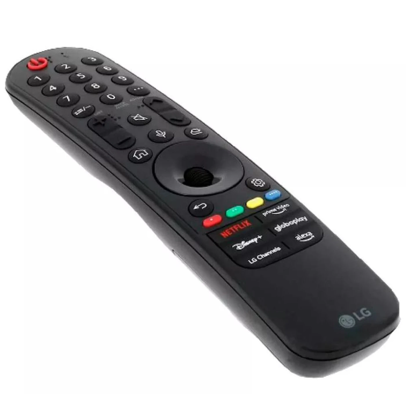 O controle remoto Magic TV LG MR23GA é um acessório essencial para a sua televisão. Com a função de comando de voz, basta apertar o botão e falar o que deseja buscar, e a TV apresentará as opções para você.