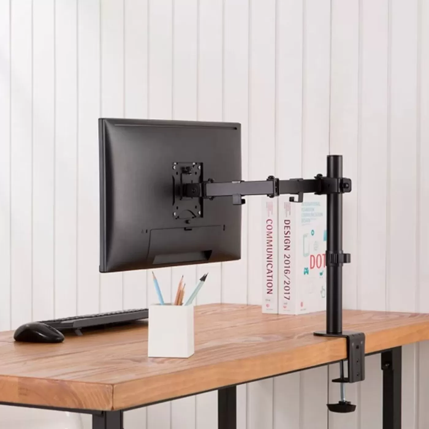 Indicado para monitores com peso de até 8 Kg ( sem a base original ) e compatíveis com padrão de fixação VESA 75x75 ou 100x100mm, normalmente encontrado em telas de 17 a 32 polegadas.