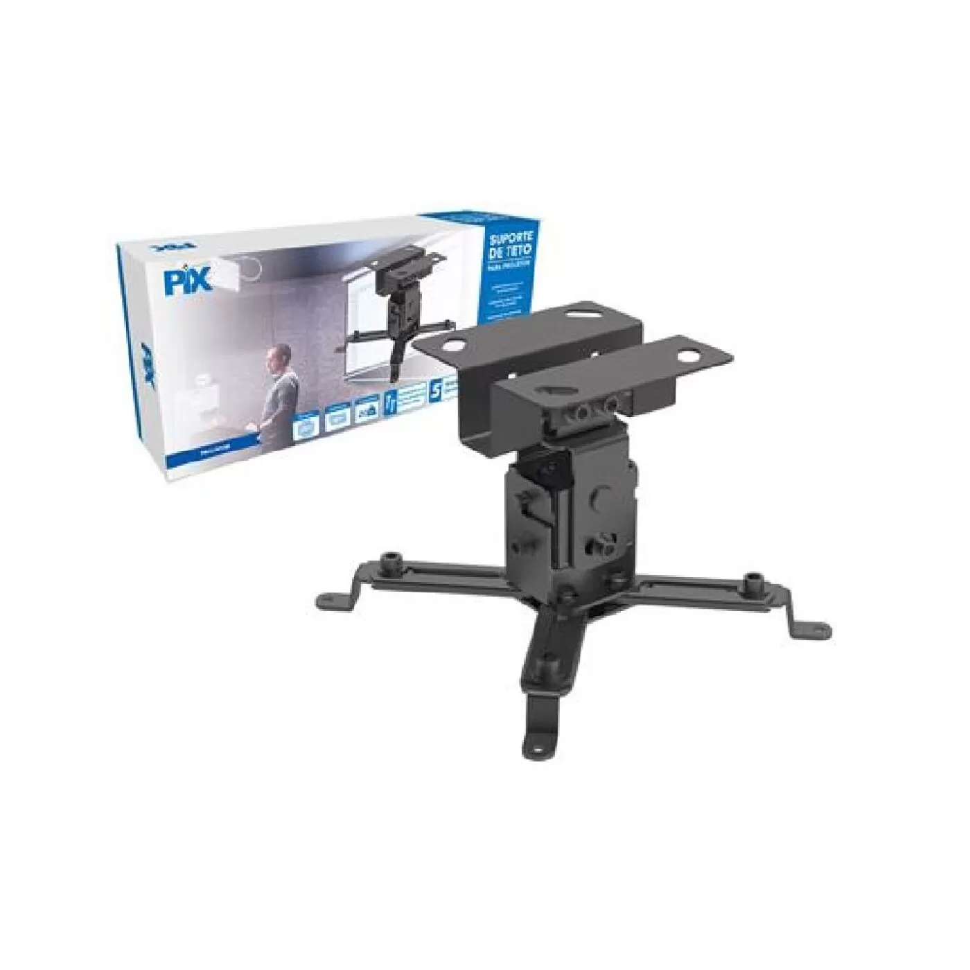 Para uma apresentação corporativa, transmissão de um evento esportivo ou até mesmo para assistir a um filme em casa com imagem de cinema, além de um projetor de qualidade, um suporte adequado e seguro é fundamental. O suporte de teto da PIX é de fácil instalação, com ajuste para vários ângulos de visualização, e compatível com a maioria dos projetores.