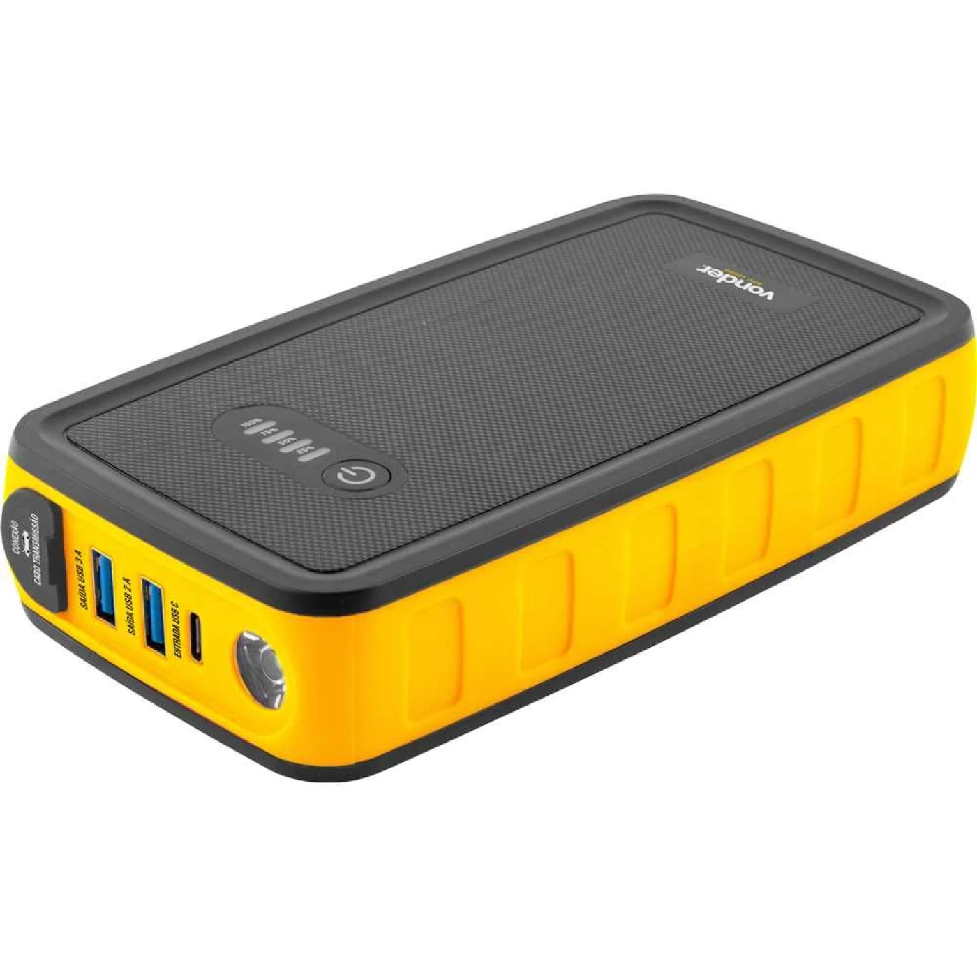 Extremamente portátil e fácil de usar, o Auxiliar de partida Vonder possui lanterna de LED de alta luminosidade com 3 modos (contínuo, intermitente e SOS), além de garras inteligentes que protegem contra ligações de polaridade invertida ou sobrecarga. Conta ainda com saída USB, o que possibilita a utilização para carregamentos da bateria de smartphones (dependendo da capacidade da bateria do smartphone e o auxiliar de partida estando 100% carregado).
