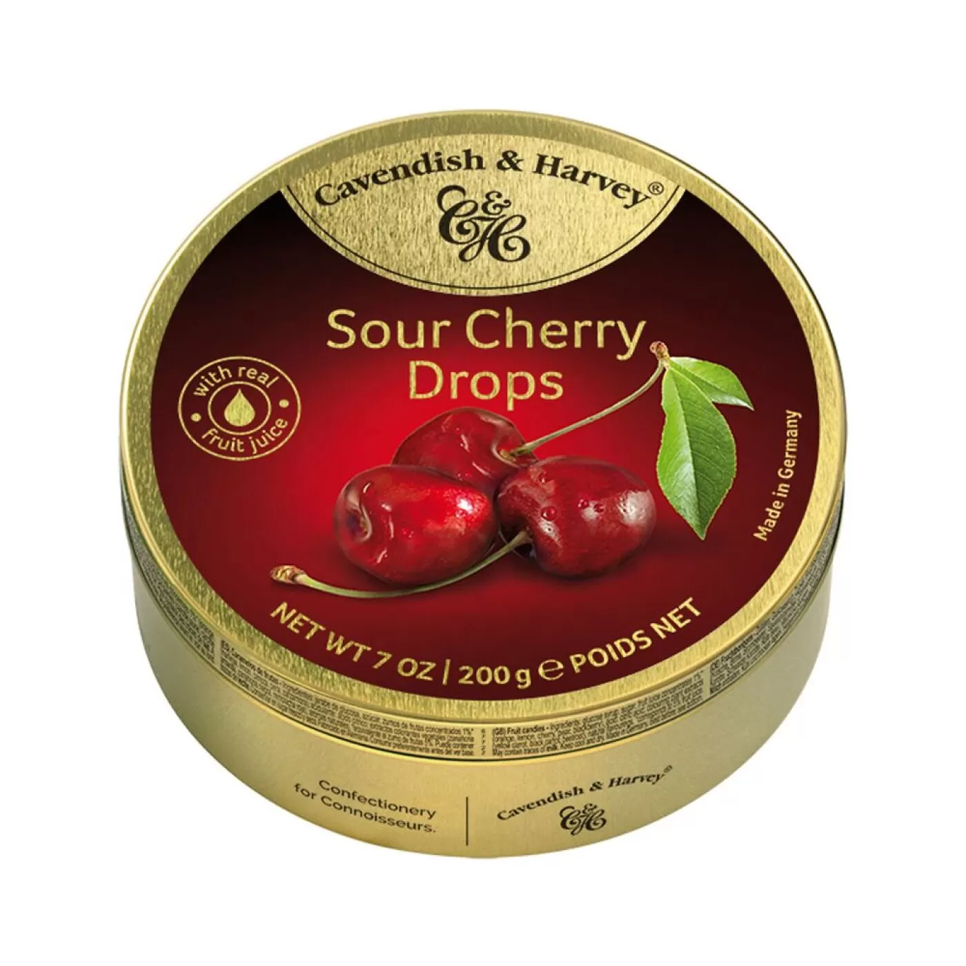 Descubra o sabor inconfundível de cerejas recém colhidas com uma pitada de frutas cítricas. Kosher, Halal, sem Glúten e sem conservantes, estes rebuçados de Cereja da Cavendish & Harvey são feitos a partir de sumo de fruta e polvilhados com açúcar de confeiteiro. São apesentados selados numa lata dourada premium, de forma a conservar o seu sabor e frescor.