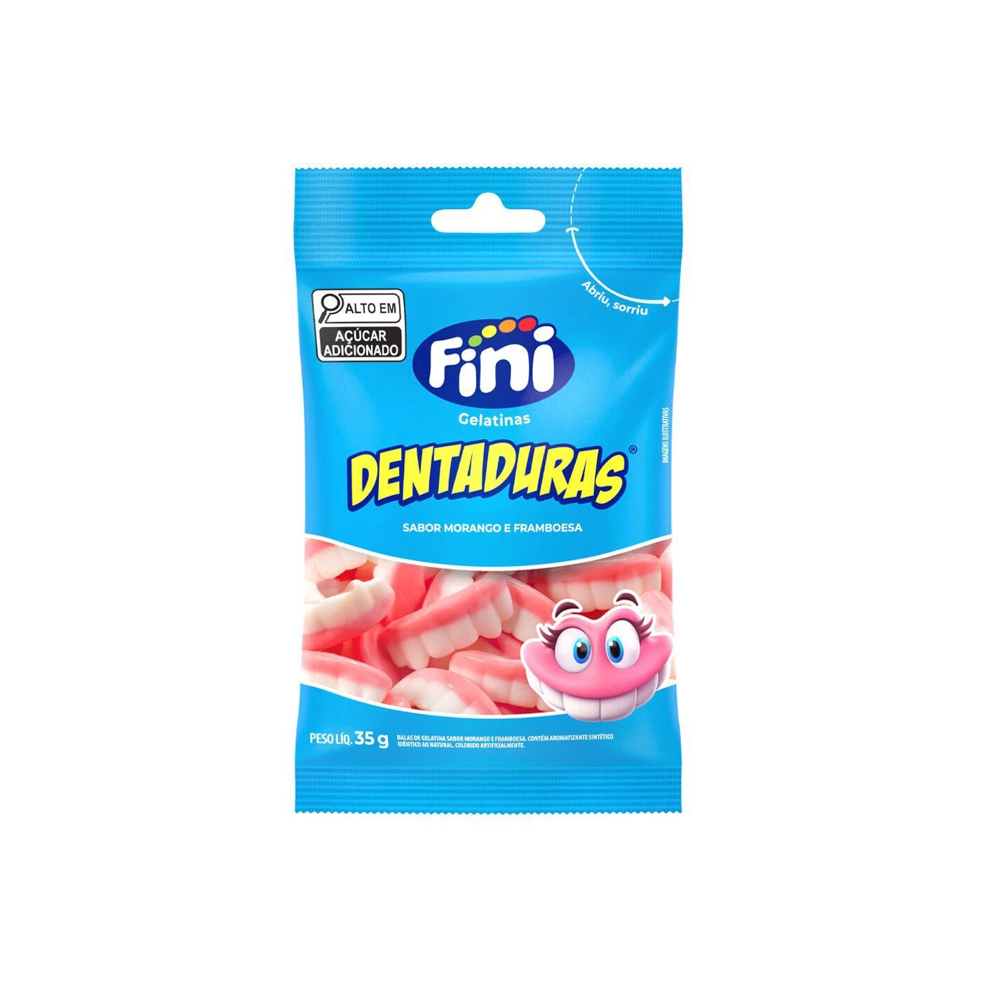 A Bala Fini Dentaduras 35G é um doce divertido e saboroso, ideal para todas as idades. Cada bala possui formato de dentadura e traz um sabor frutado marcante, garantindo momentos de alegria e descontração. Produto da marca Fini, modelo Dentaduras 35G, fabricado com ingredientes selecionados e seguindo rigorosos padrões de qualidade e segurança alimentar. Perfeita para festas, lembrancinhas ou para consumo individual. Contém 35 gramas por unidade.