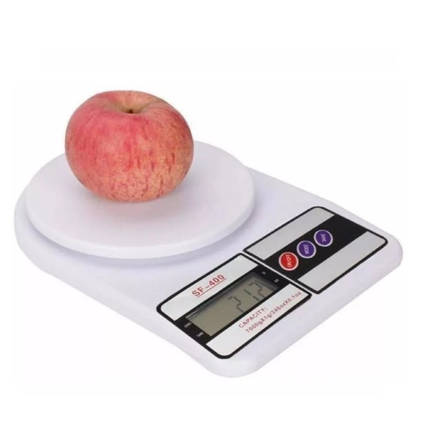 A balança de cozinha SF-400 da SQ tem uma função TARA, que permite calcular o peso do recipiente que você está usando e depois retornar a 0 para que você possa pesar os ingredientes da sua receita sem erros.