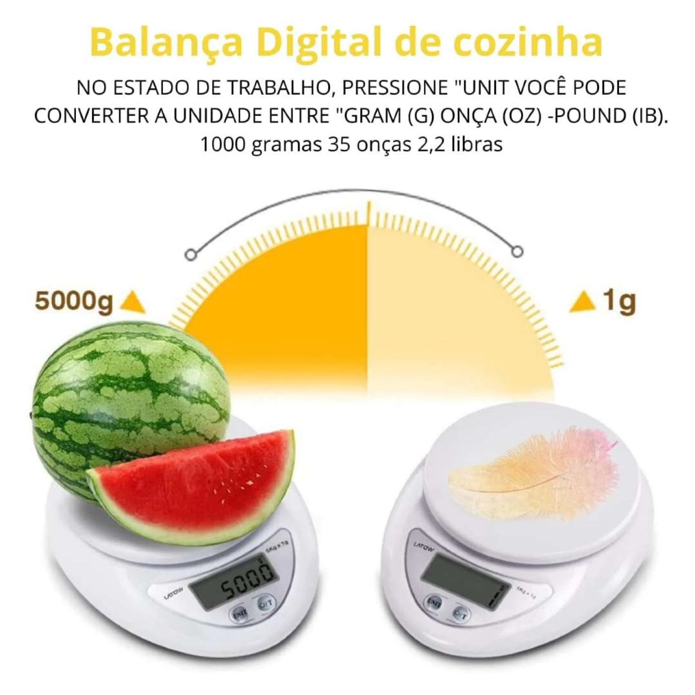 » Esta balança é indicada para alimentos e para líquidos, pois possui um recipiente que permite medir volumes líquidos.