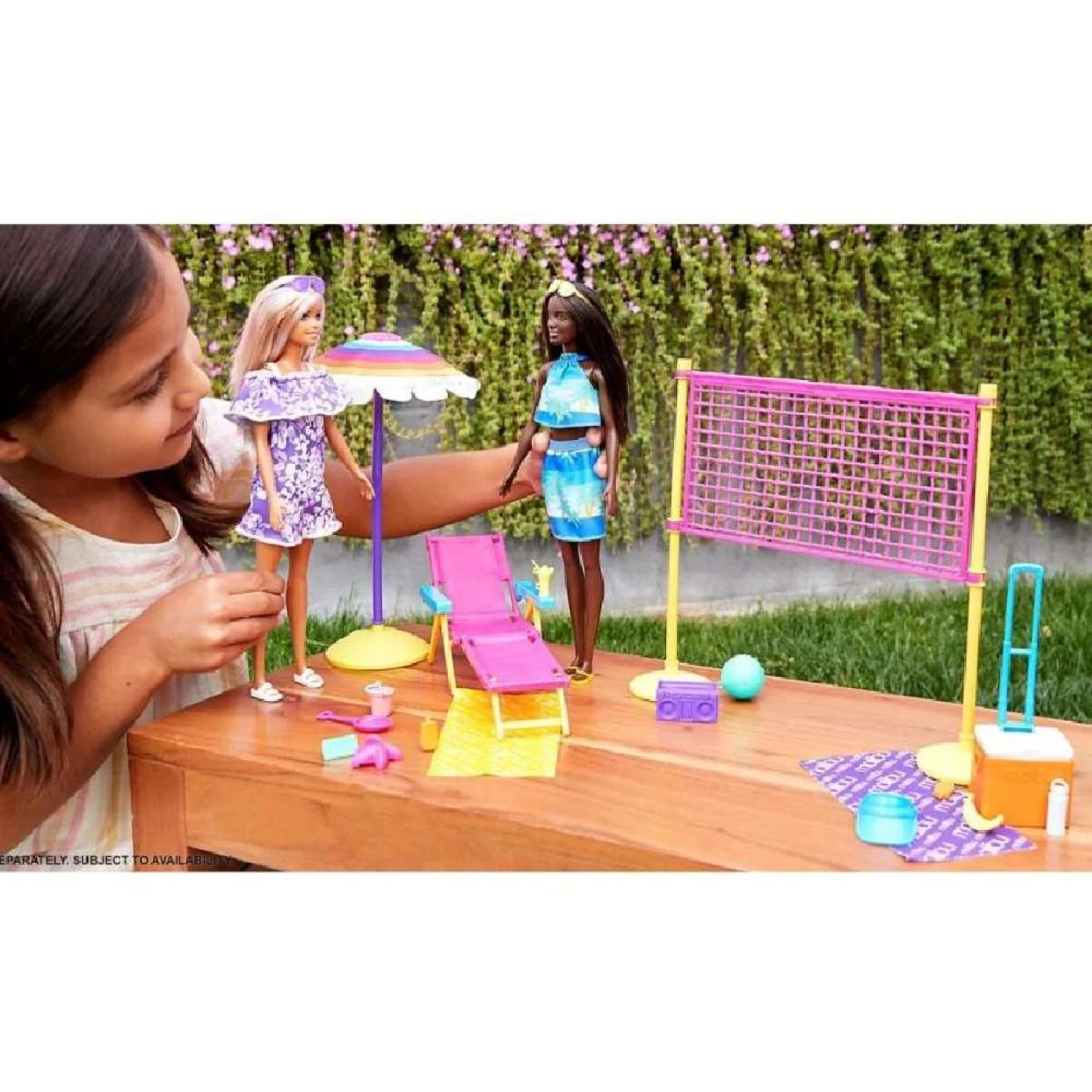 O cenário de um dia na praia da Barbie tem tudo que ela precisa para curtir esse dia ensolarado da melhor maneira!