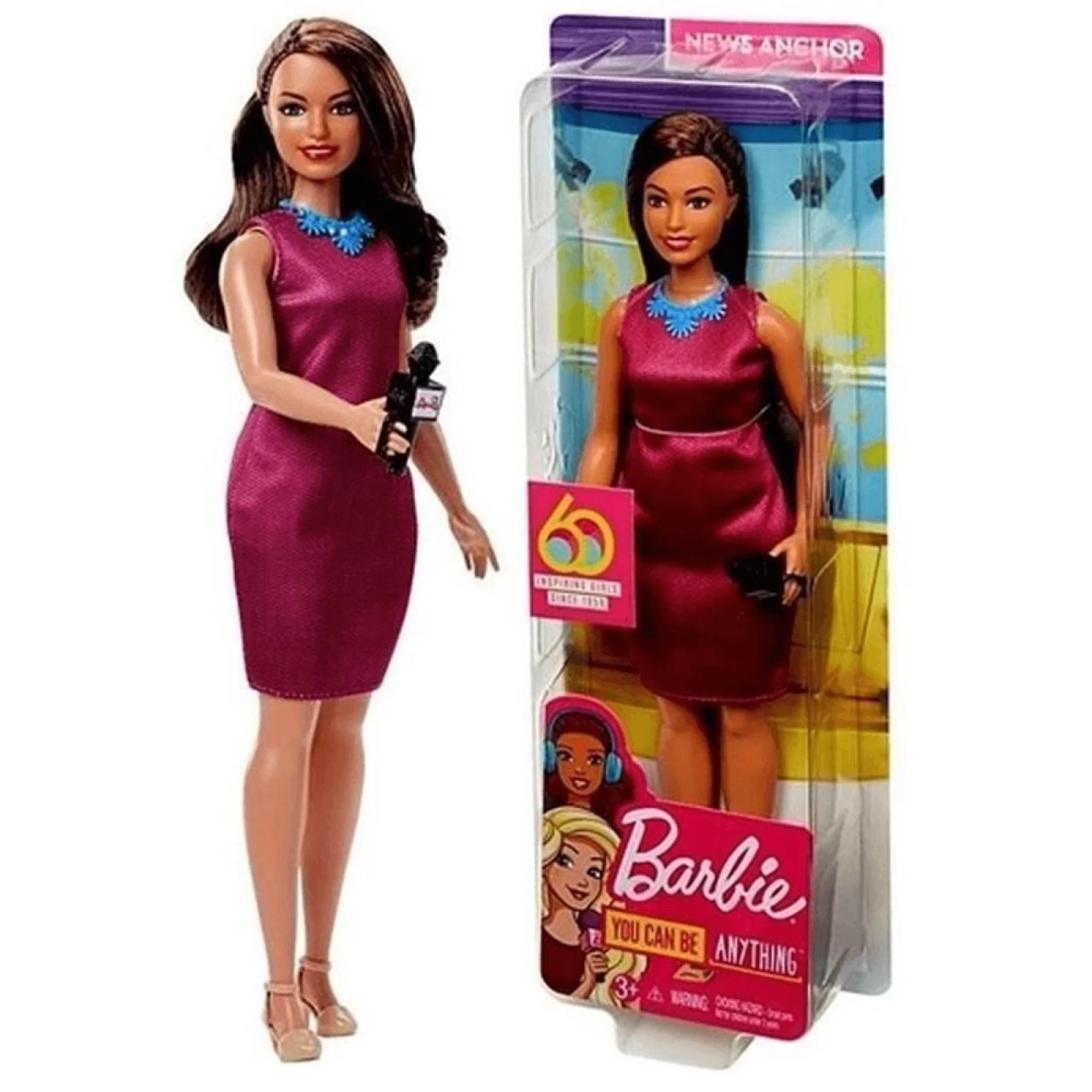Conteúdo da embalagem: 1 Barbie Repórter Morena Colecionável 60 Anos Edição Especial;