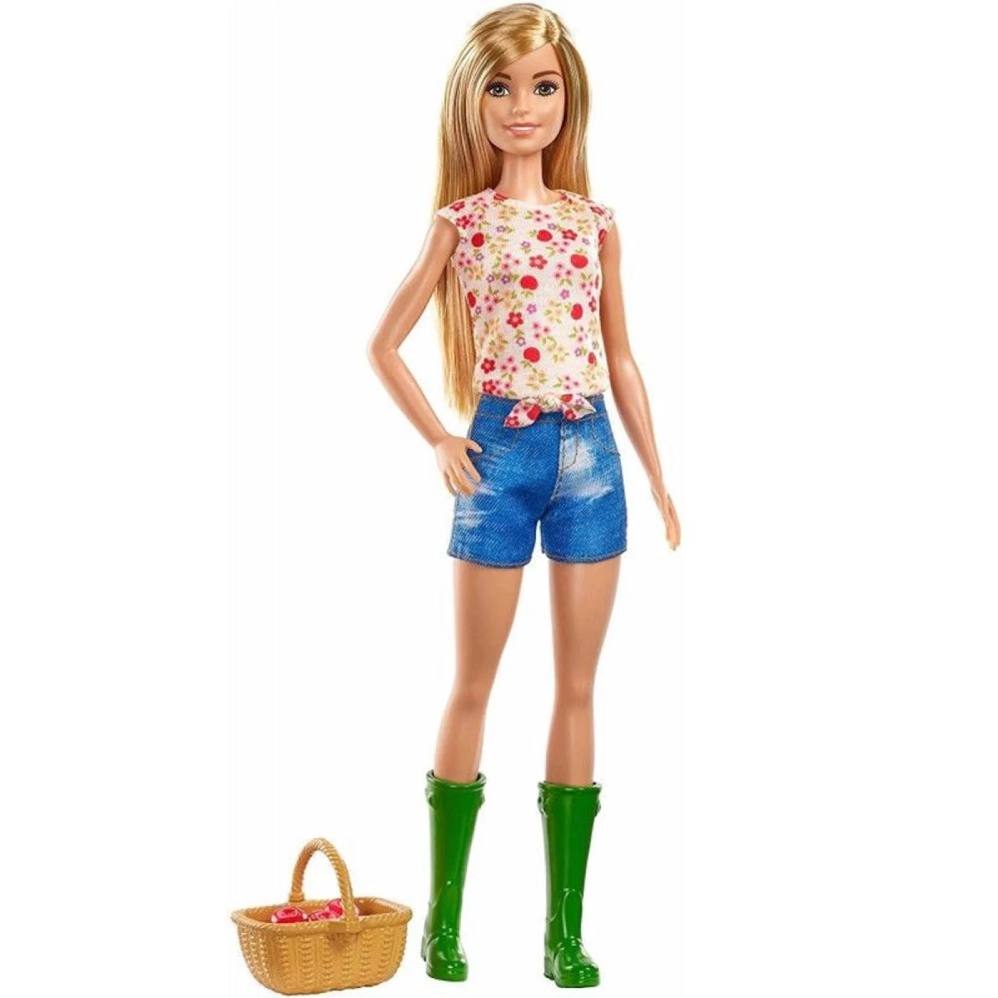 Boneca Barbie Agricultora Cultura das Maçãs, está pronta e te convida para a colheita das maçãs junto com ela! Venha ajuda a Barbie Profissões Agricultora a realizar essa aventura pela fazenda. A Boneca Barbie Agricultora Cultura das Maçãs já está pronta com sua cestinha de maçãs e botas, além de uma linda blusa com estampa de flores e um shorts azul.