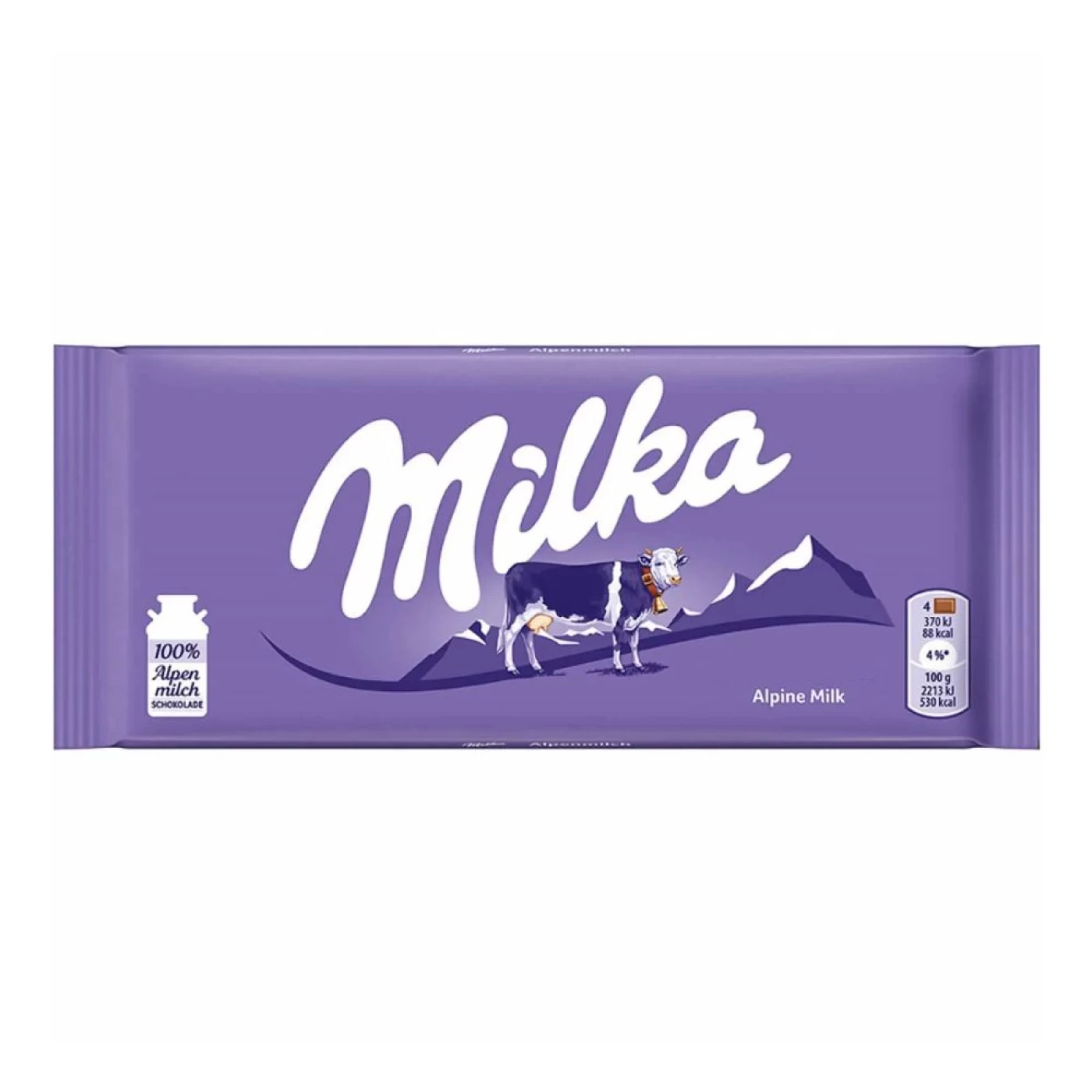Barra de chocolate importado da marca Milka com 100g. A barra Alpine Milk, ou Ao Leite, da marca roxinha mais famosa do mundo. Sabor inconfundível, que derrete na boca, o verdadeiro chocolate dos alpes suíços!