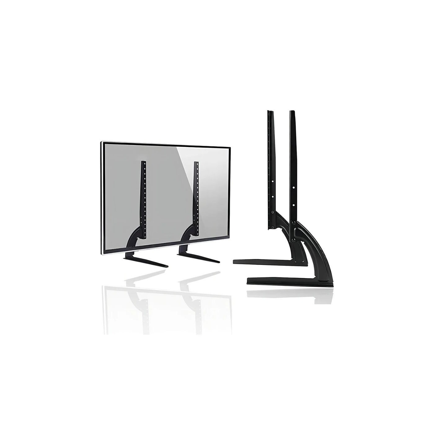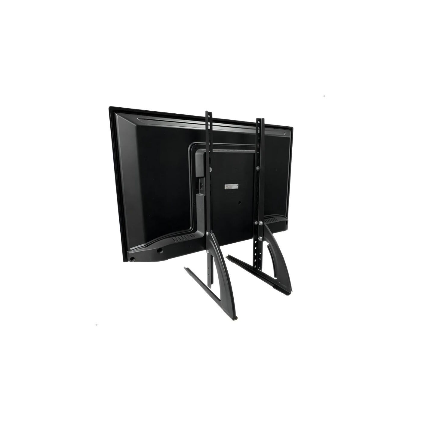 Base de mesa para TV de 36 a 75 polegadas, com design moderno e acabamento preto. Estrutura resistente em aço e vidro temperado, suporta TVs de até 50 kg, garantindo estabilidade e segurança. Ideal para salas de estar, escritórios ou ambientes corporativos, facilita a organização de equipamentos e complementos eletrônicos.