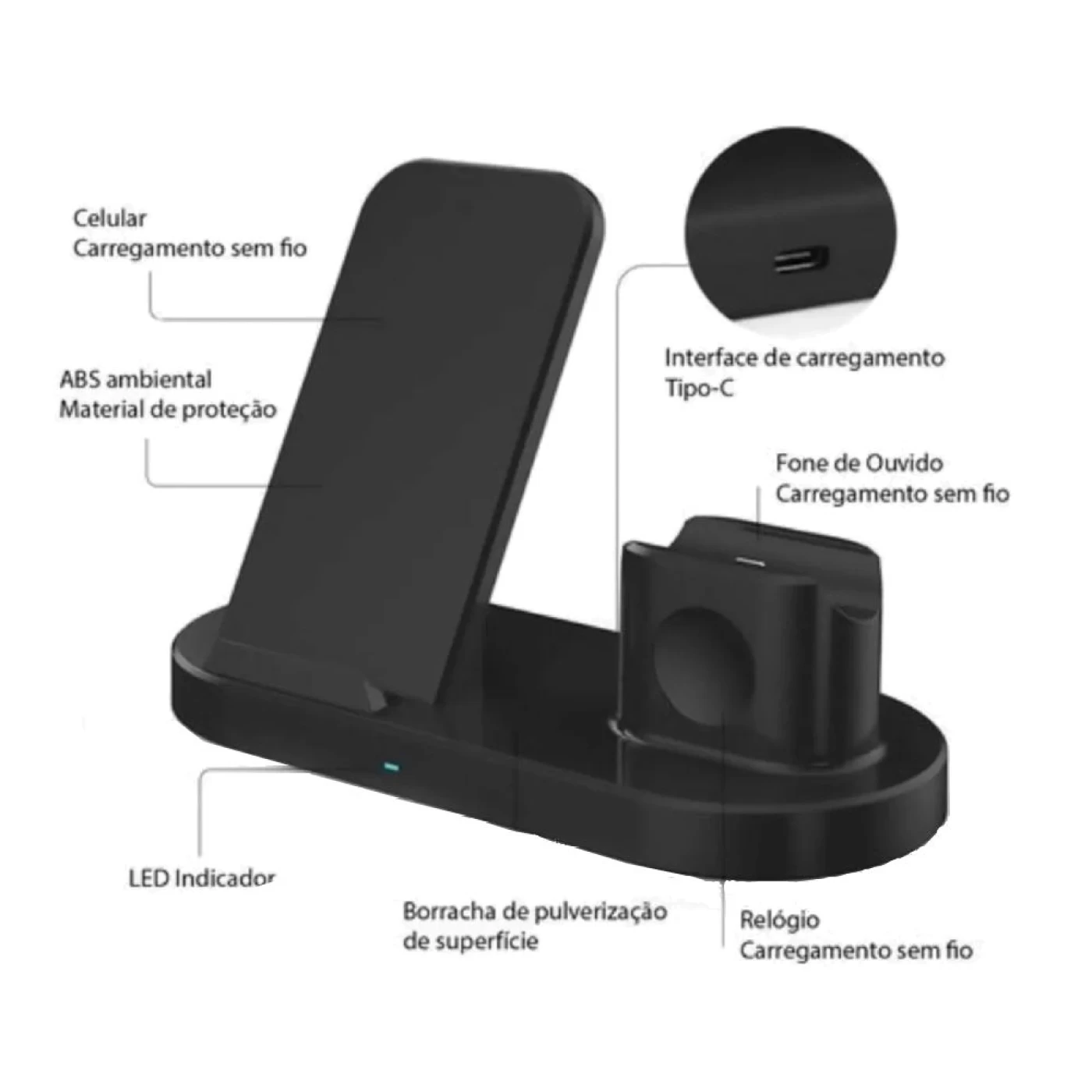 - A base é compatível com produtos Apple para carregamento simultâneo.