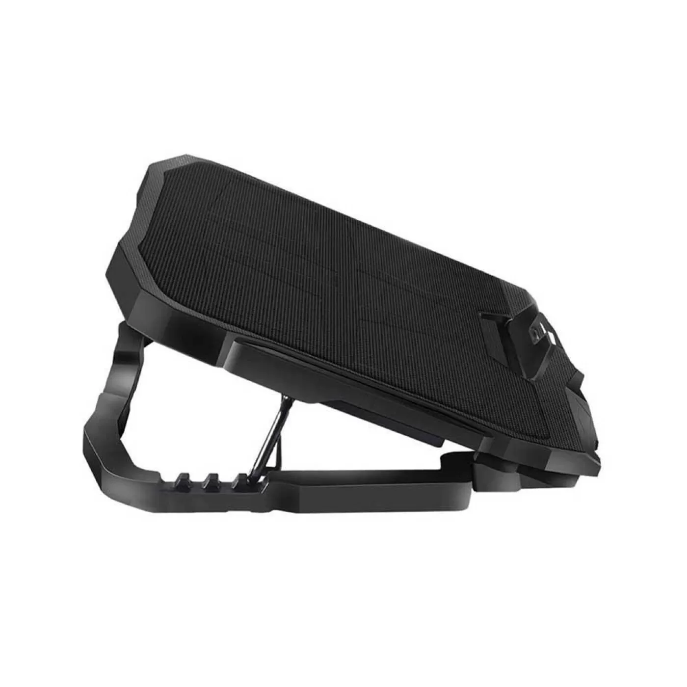 Sua superfície é de metal facilitando na dissipação do calor. 4 ventoinhas com led, para maior capacidade de resfriamento. Duas portas USB para conexão, regulagem de altura para maior conforto e melhor visibilidade do seu Lapto, além do suporte de apoio para evitar a queda do laptop.