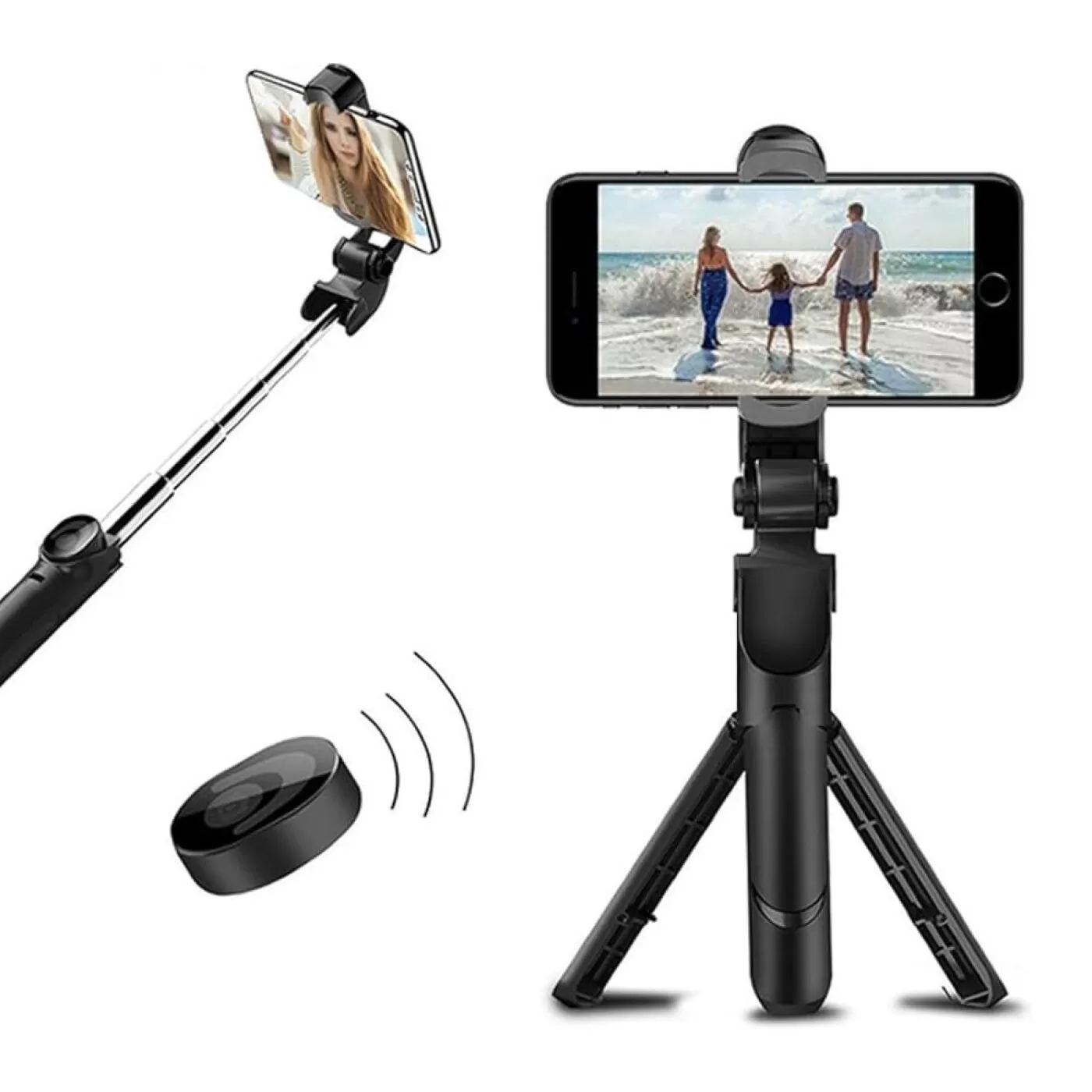 O tripé de bastão de selfie extensível pode ser utilizado em celulares ou também em câmeras pois possui uma base adaptadora