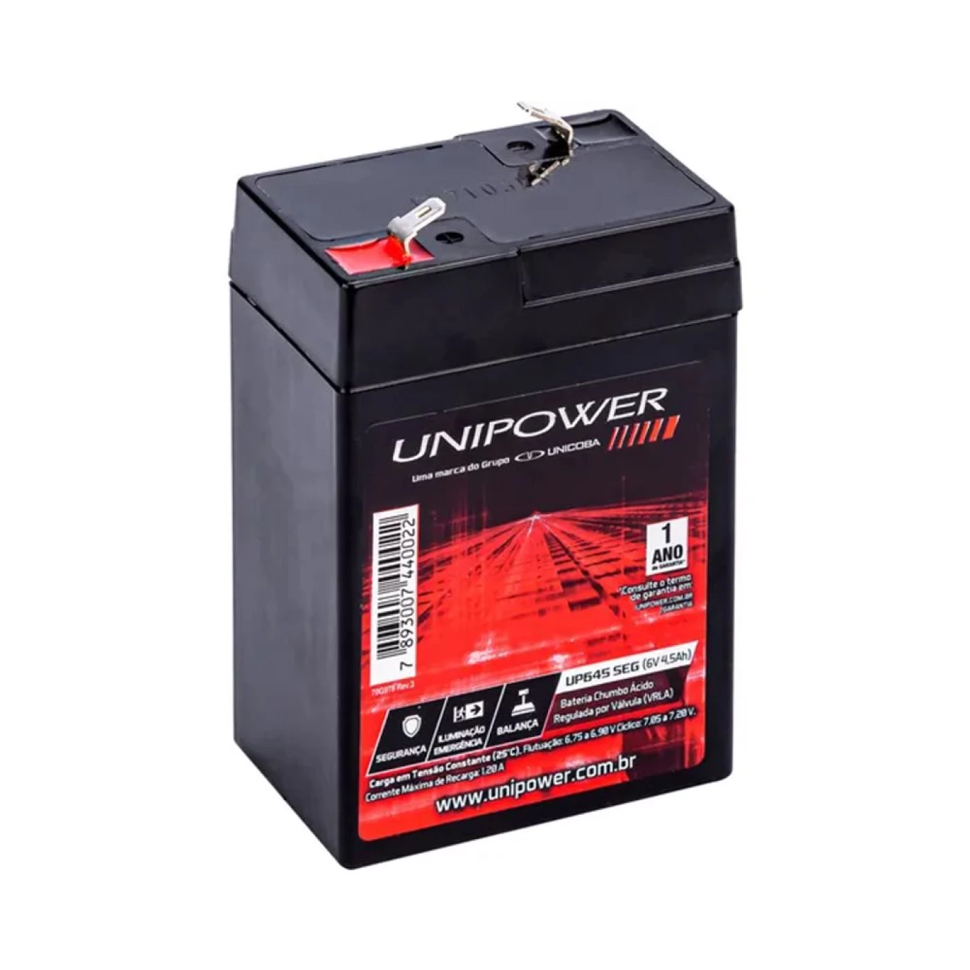 A Bateria Estacionária Selada 6V 4,5Ah VRLA UP645SEG é o modelo ideal para aplicações em sistemas de alarmes, iluminação de emergência, balanças eletrônicas, elevadores, equipamentos médicos e brinquedos eletrônicos.