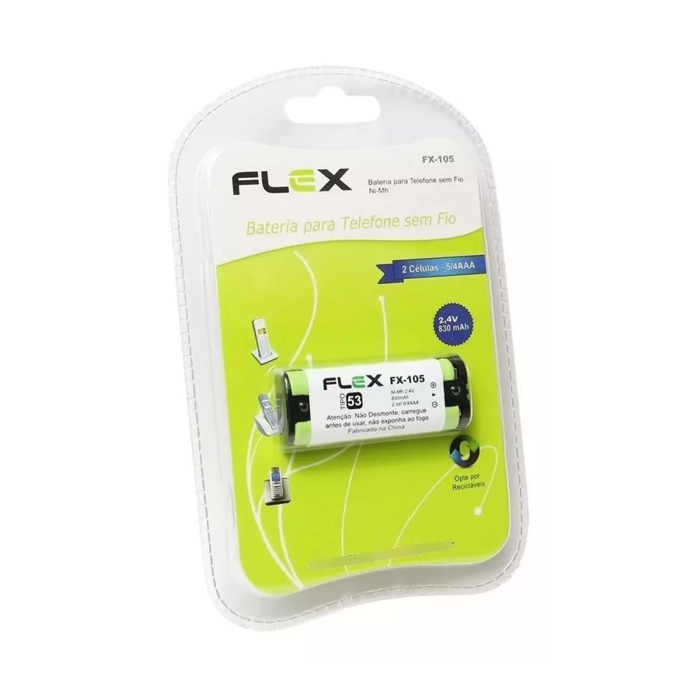 Bateria Telefone Sem Fio Tipo 53 2.4v 830mah - Fx-105 - Flex