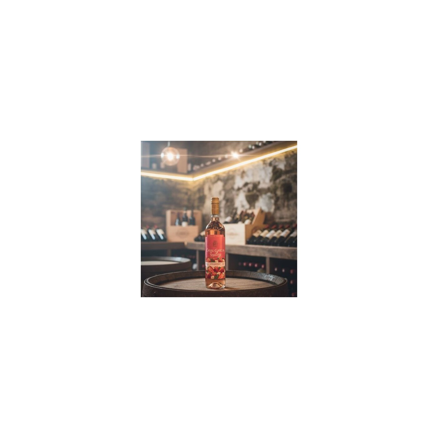 Bebida mista sabor morango da marca Casal Garcia, modelo Fruitzy (IVV793), em embalagem de 750 ml. Ideal para momentos de confraternização, com sabor leve e refrescante, pronta para consumo e teor alcoólico equilibrado.