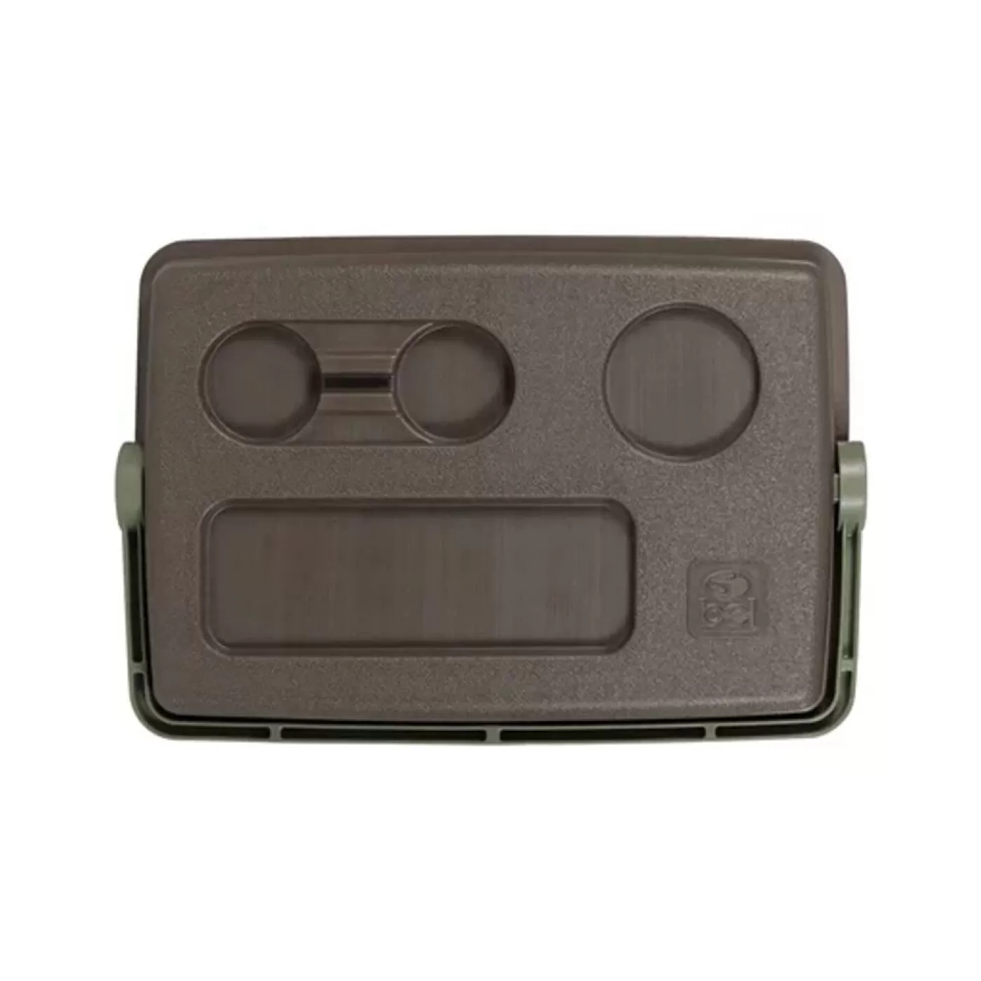 A tampa possui um design diferenciado com suporte para bebidas e sua alça ergonômica facilita na hora do transporte.