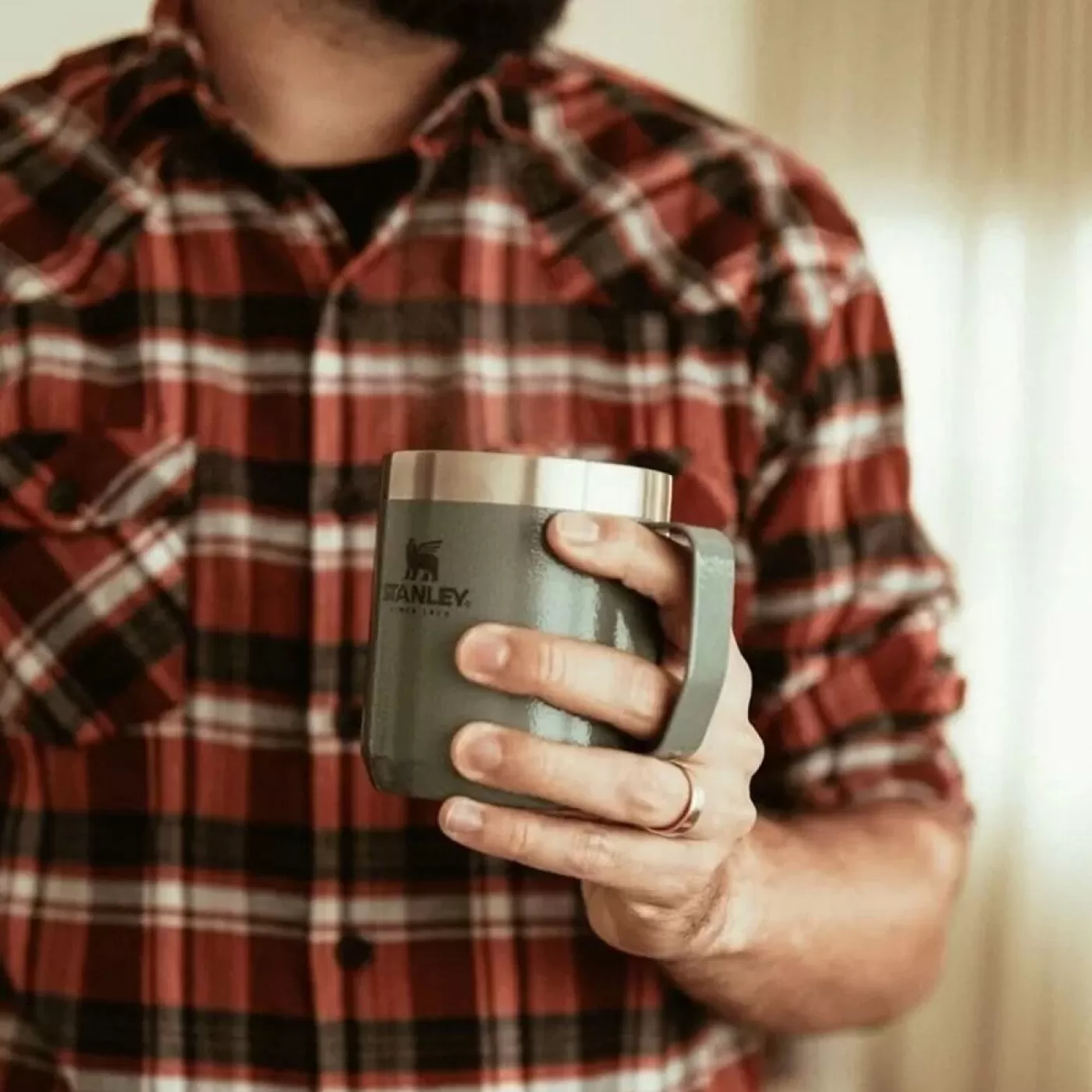 Caneca Lendária com isolamento a vácuo de parede dupla Stanley, mantém bebidas quentes ou frias por períodos prolongados. A tampa Tritan™ de encaixe seguro previne respingos, permitindo o uso em diversos ambientes.