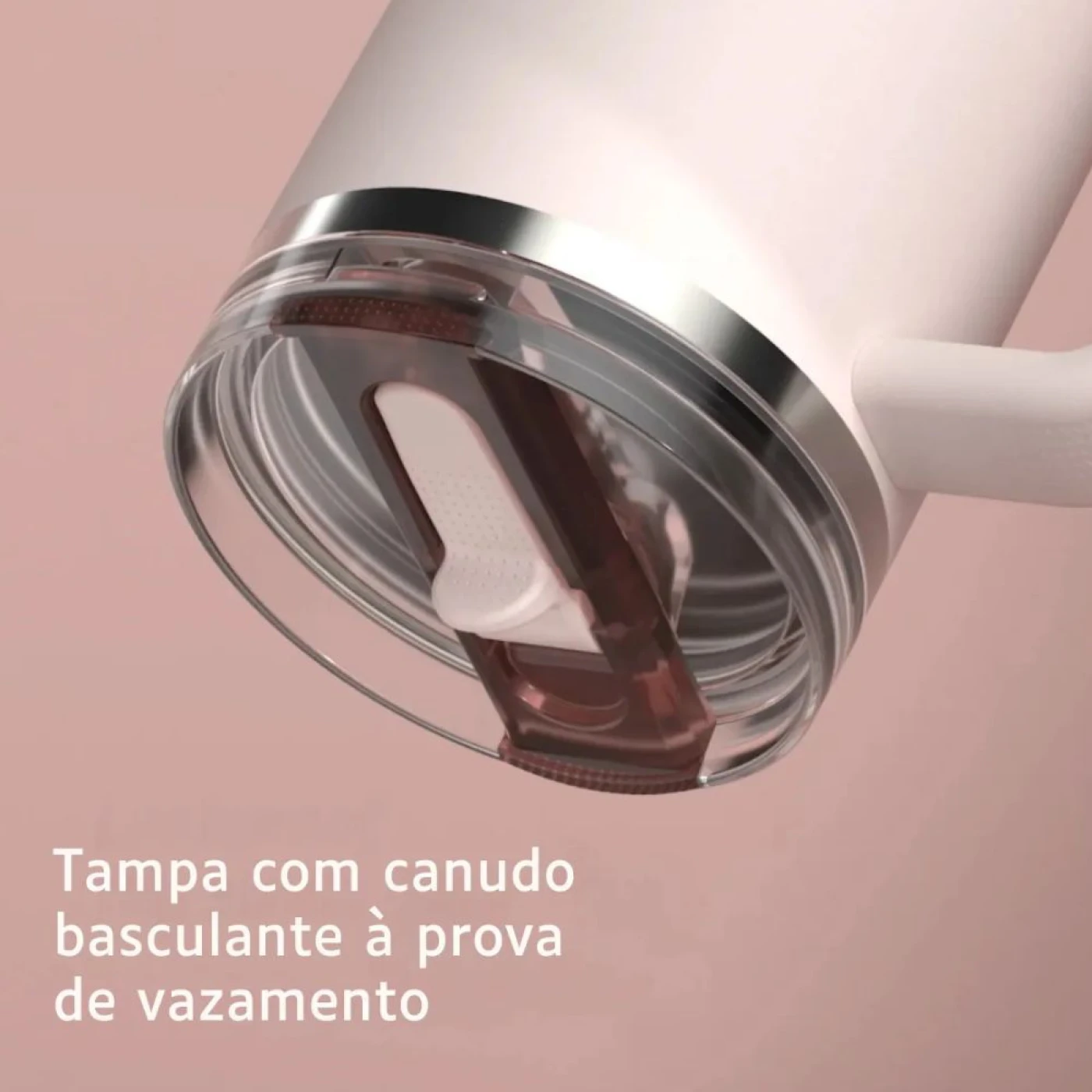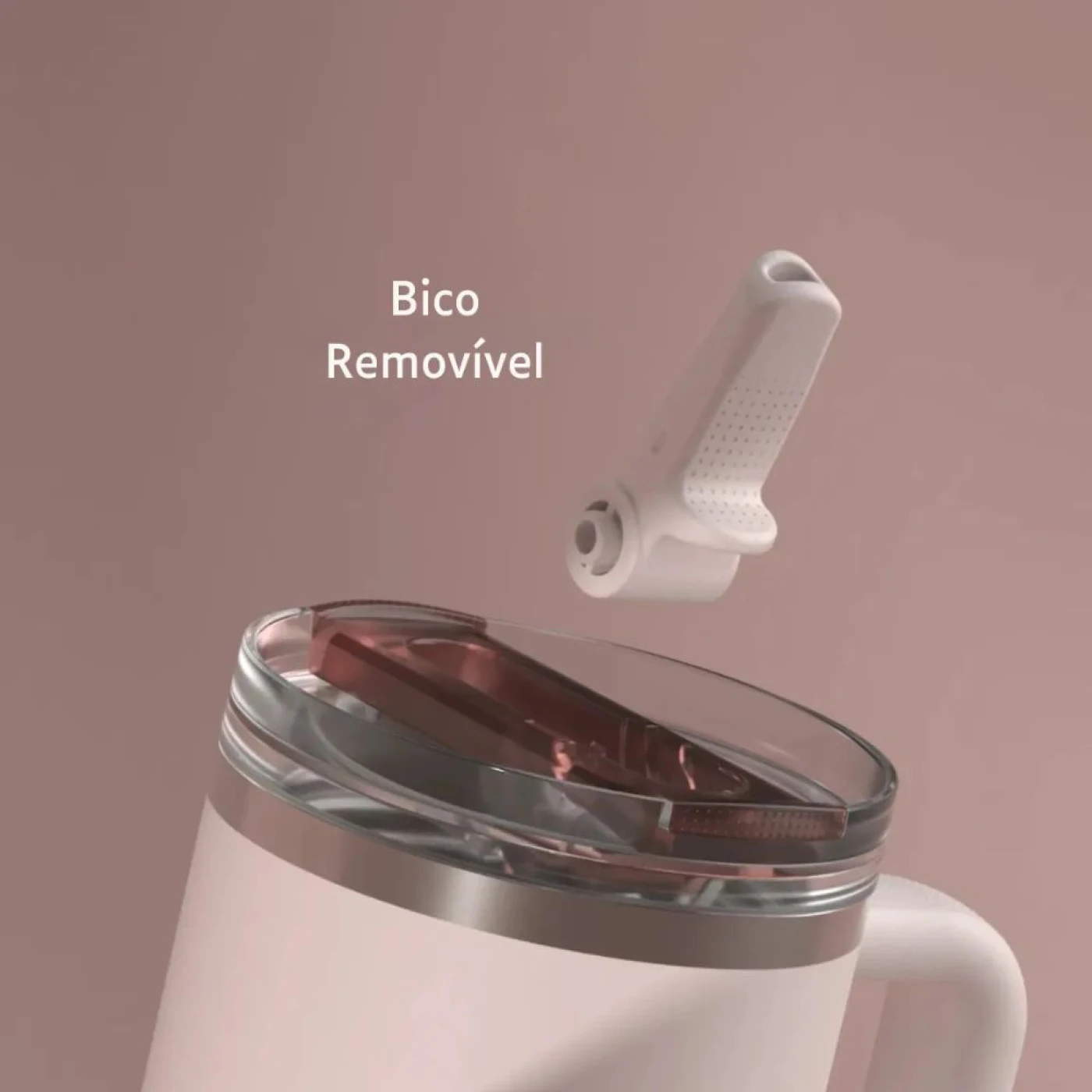 Fabricado com aço inoxidável 18/8 e isolamento a vácuo de parede dupla, este copo mantém sua bebida gelada por até 11 horas ou até 2 dias com gelo. A tampa em 3 posições evita respingos, enquanto o canudo removível e a alça emborrachada proporcionam conforto e facilidade no uso.