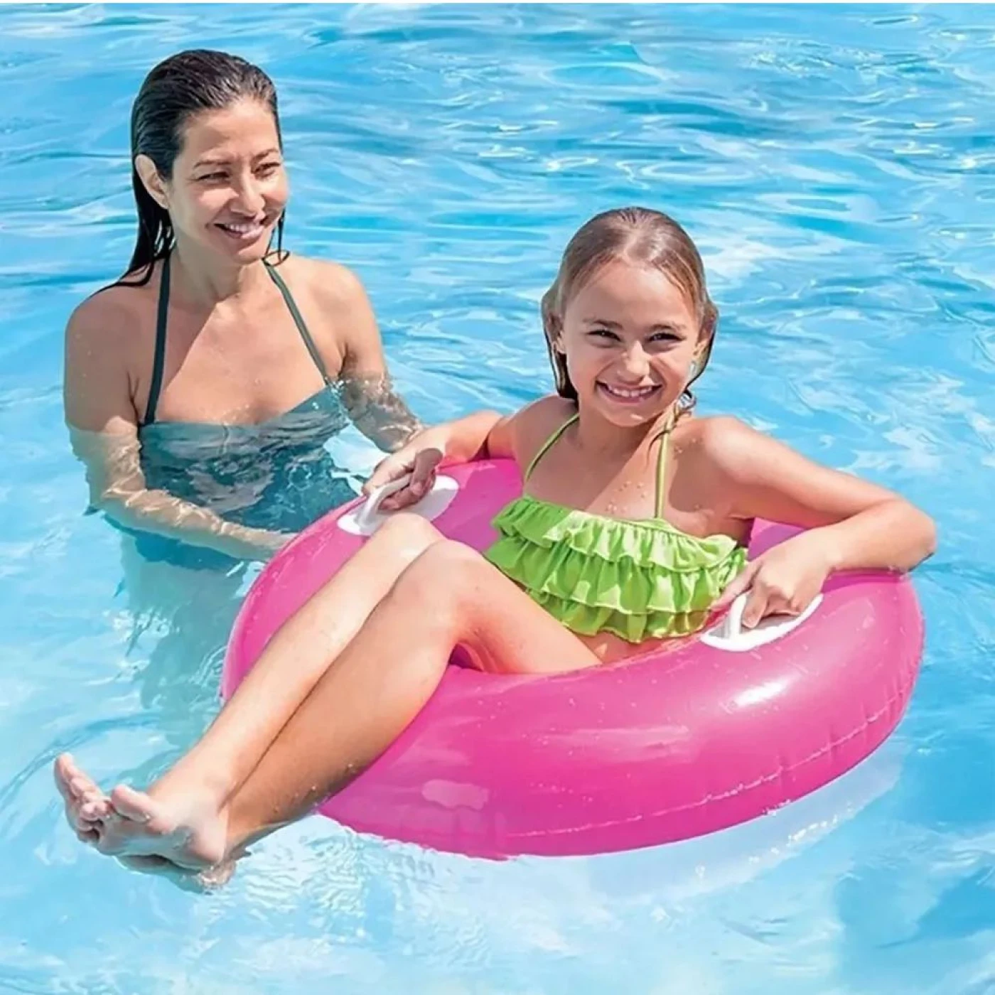 - Como uso este produto: O adulto ajusta a criança no assento da bóia antes do uso. OBS: O produto deve ser usado sob supervisão do adulto Nunca deixe a criança sozinha.