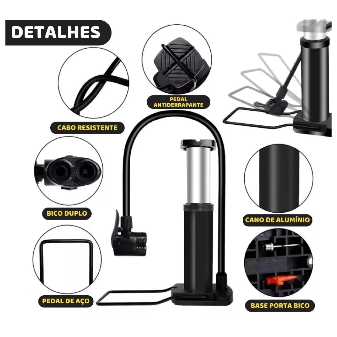 As bombas de ar são fundamentais para qualquer ciclista, seja em trilhas, estradas, ou passeios urbanos. Nossas bombas são portáteis e são elaborada para ser transportada e utilizada com facilidade. Pode ser utilizada para inflar diversos objetos, ideal para encher pneus, bolas, piscinas, colchões, botes, etc.