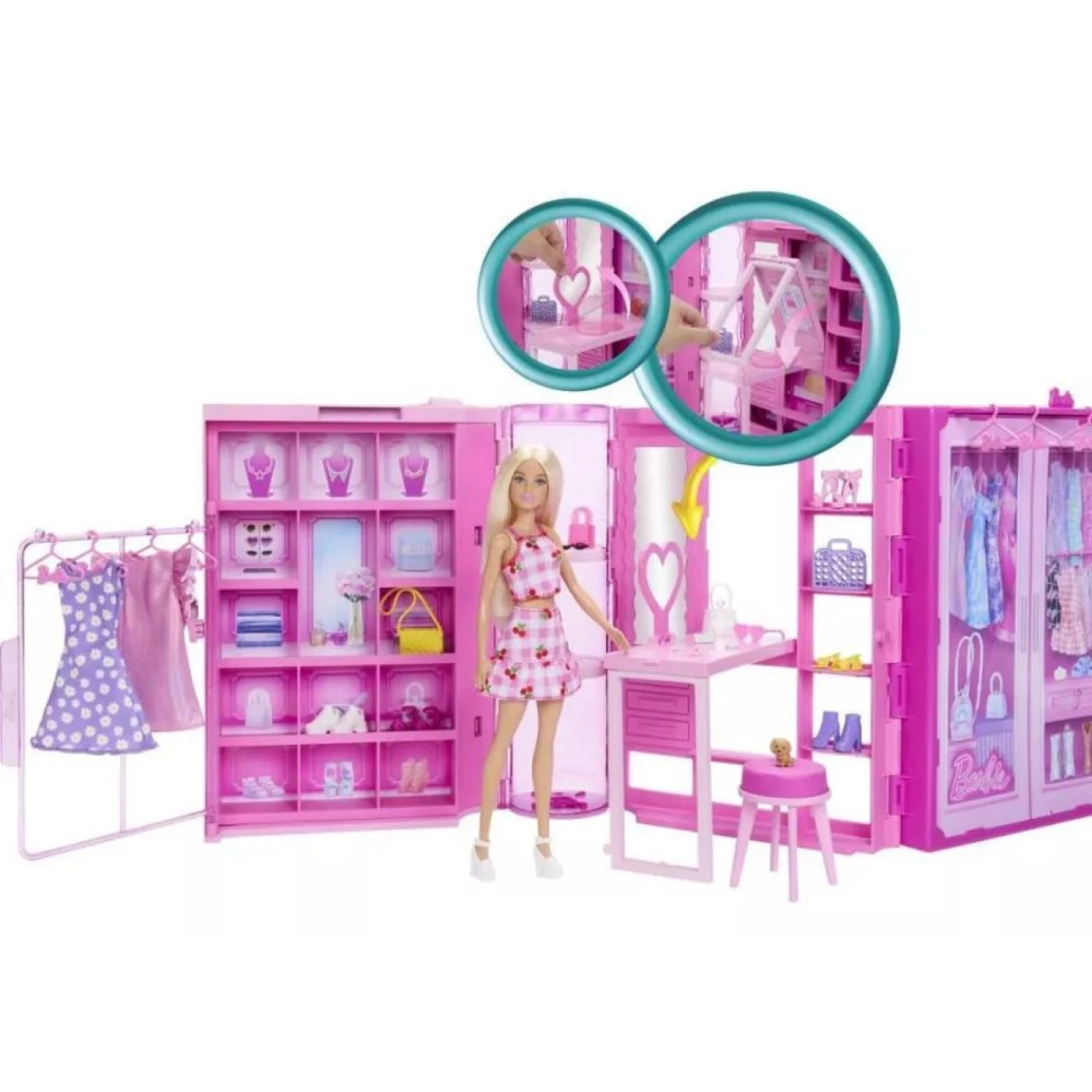 Design Vibrante: Com um acabamento rosa vibrante e detalhes brilhantes, o closet é tão encantador quanto prático, tornando-o um destaque em qualquer coleção de brinquedos.