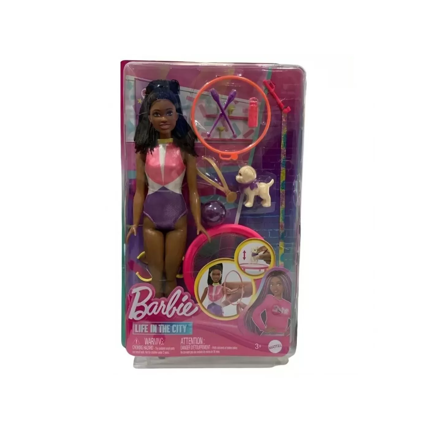 Vestida com uma malha colorida, a boneca Brooklyn tem todas as ferramentas necessárias para se divertir. Basta prender o clipe amarelo giratório na cintura da boneca e usá-lo para ajudá-la a virar, fazer estrela e executar outros movimentos legais e desmontagens!