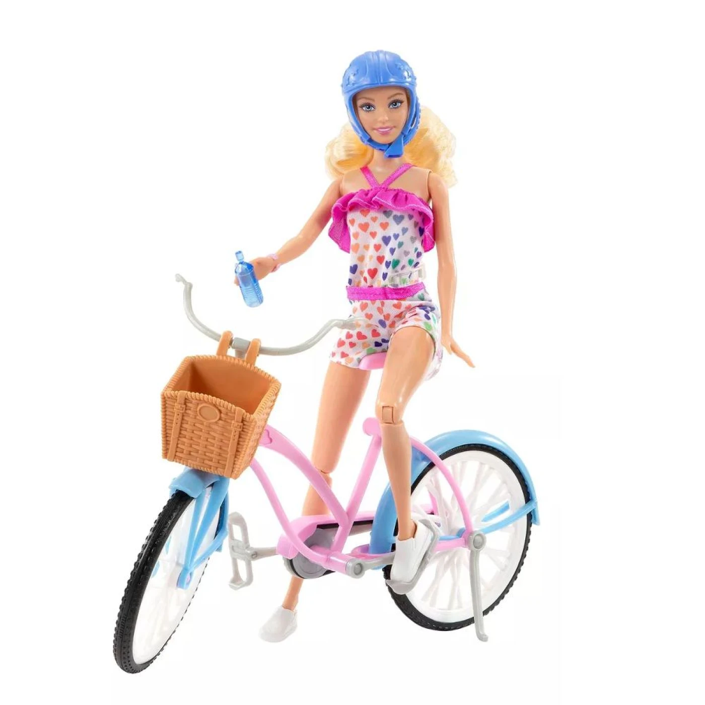 A diversão começa ao encaixar a Barbie no assento, colocando suas mãos no guidão e empurrando!