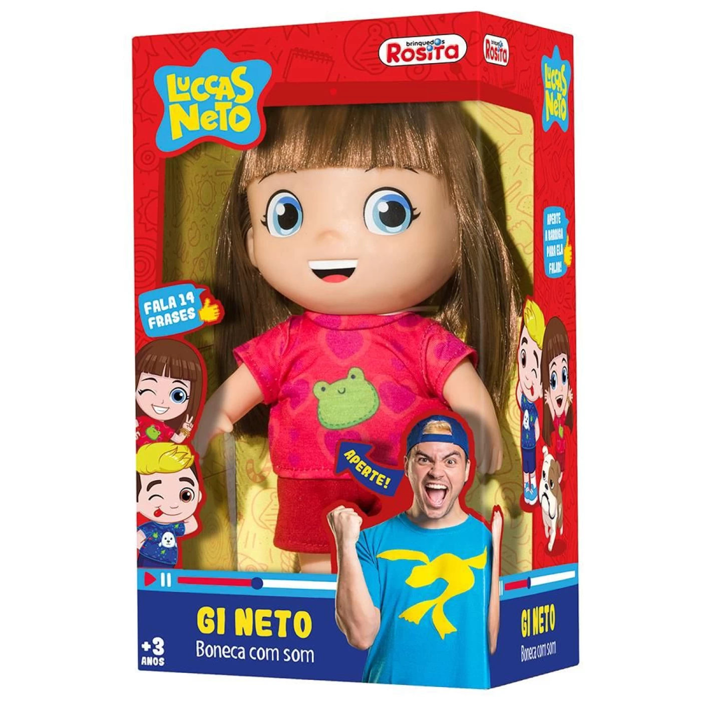 A Boneca Gi Neto é uma graça e encanta a garotada, e motivos para isso não faltam. Além de ser linda e charmosa, ela emite sons de 14 frases como as de seus vídeos com Luccas Neto.Pois é, um dos mais ilustres youtubers, que tem uma legião de seguidores teens no seu canal, traz em sua linha de bonecos a linda Gi Neto, que é muito esperta e faz a alegria das crianças!