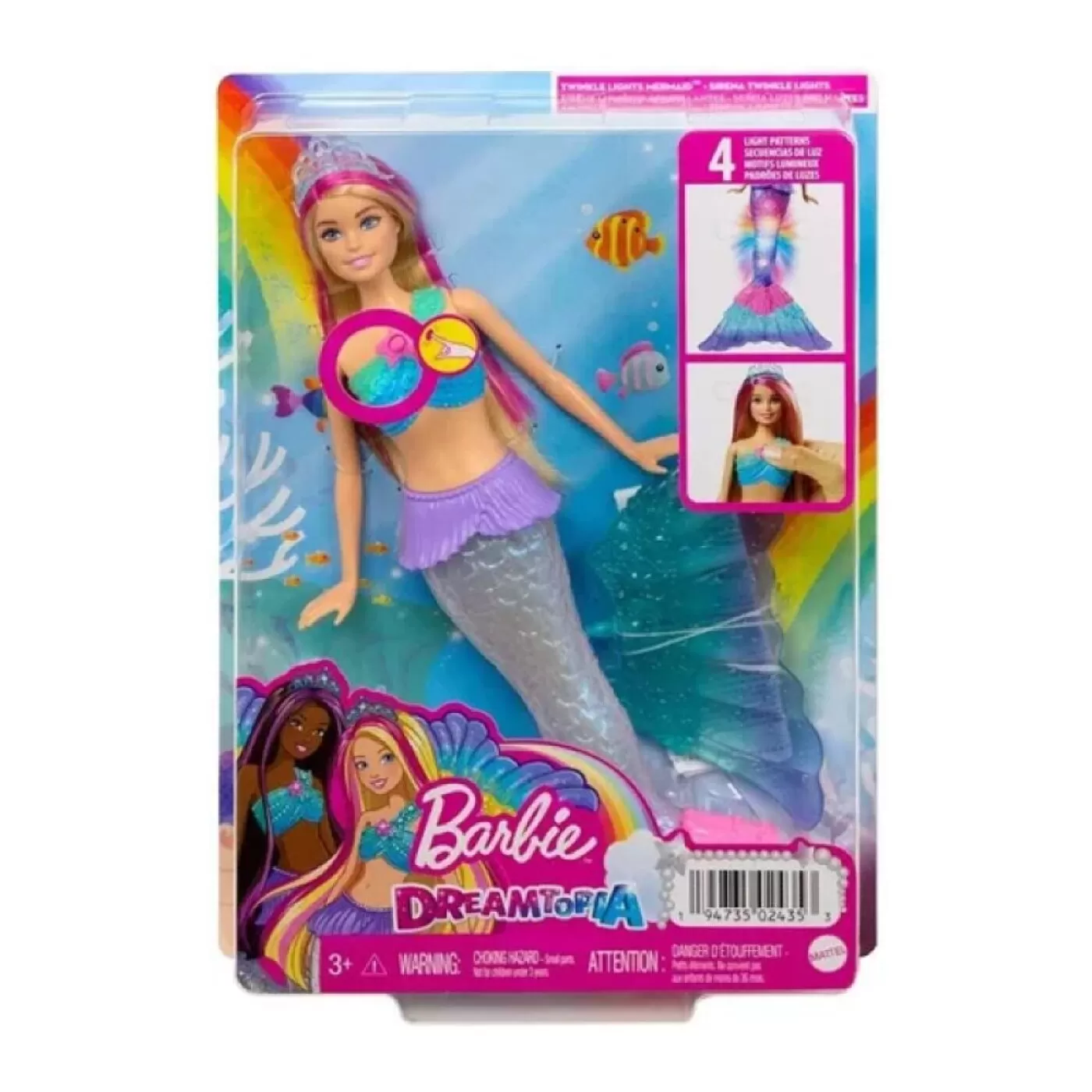 Faça um mergulho com a boneca Barbie ™ Dreamtopia Twinkle Lights Mermaid ™, com um visual fantástico e um recurso de iluminação mágico!