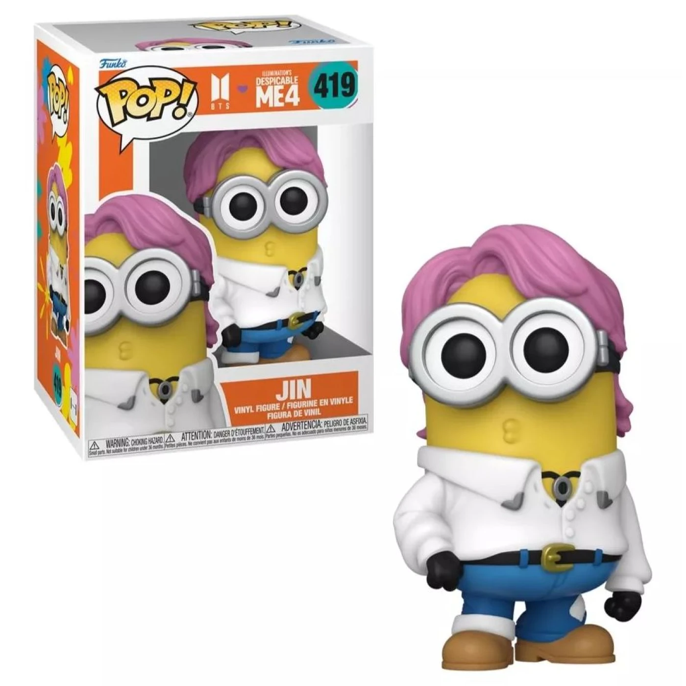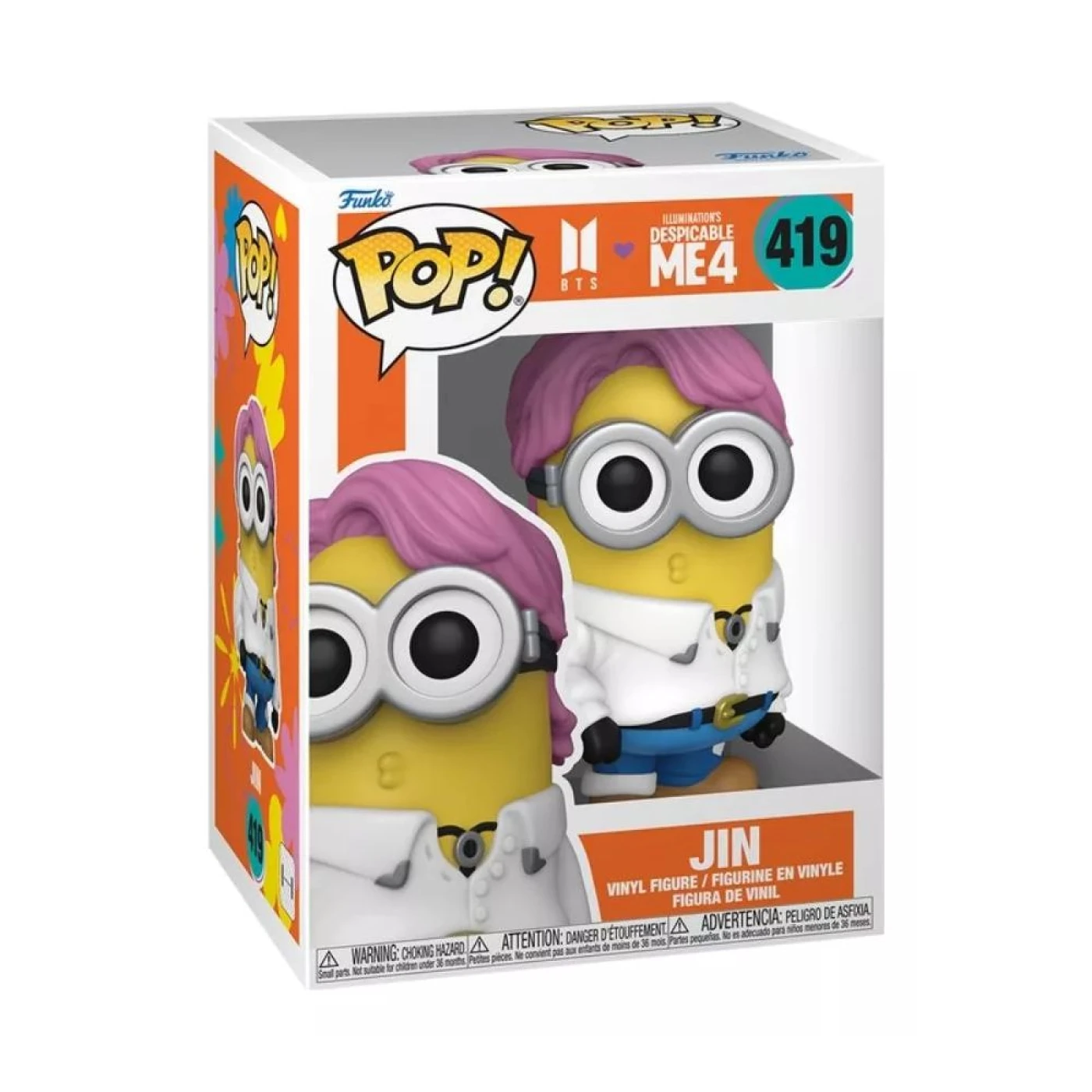 Adicione um toque musical e divertido à sua coleção com o Boneco Funko Pop! Jin. Este Voneco Funko Pop! exclusivo mostra Jin como um Minion, combinando a sensação K-pop do BTS com o universo de Meu Malvado Favorito 4. Com aproximadamente 11 centímetros de altura, é uma peça essencial para fãs de BTS e colecionadores de Funko Pop! Complemente sua coleção com este visual único e divertido de Jin!