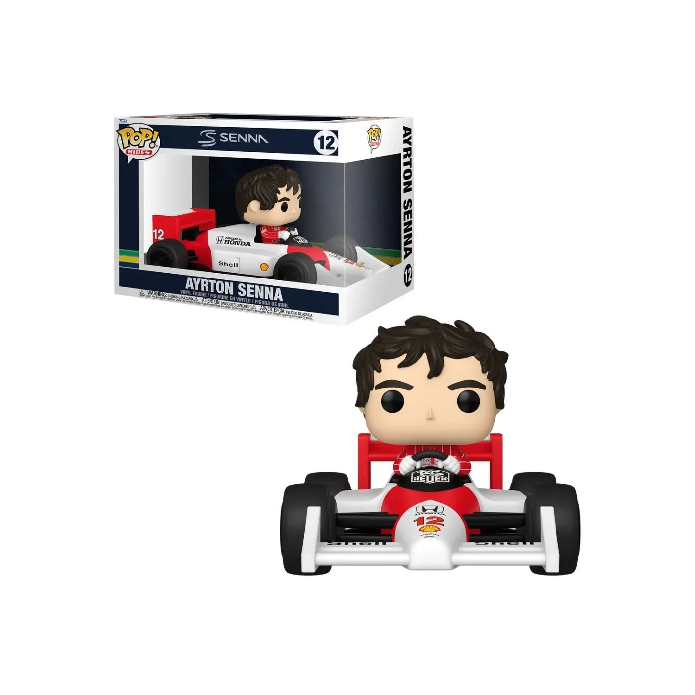 Reviva a história da Fórmula 1 com o boneco Funko Pop! Racing Lotus Ayrton Senna. Este colecionável retrata Ayrton Senna, ícone do automobilismo brasileiro, em seu carro Lotus, com detalhes fiéis ao uniforme, capacete e cores originais da equipe. Ideal para fãs de corrida e colecionadores de Funko Pop!. Fabricado em vinil de alta qualidade, possui acabamento resistente e pintura detalhada, garantindo durabilidade e autenticidade.