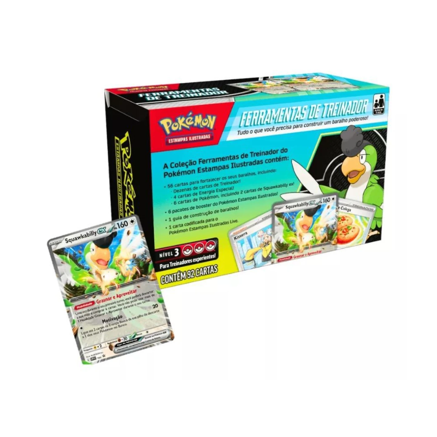 Assuma o controle com baralhos completamente novos e combinações originais, e experimente toda a diversão de batalhas competitivas acirradas com a Coleção Ferramentas de Treinador do Pokémon Estampas Ilustradas!