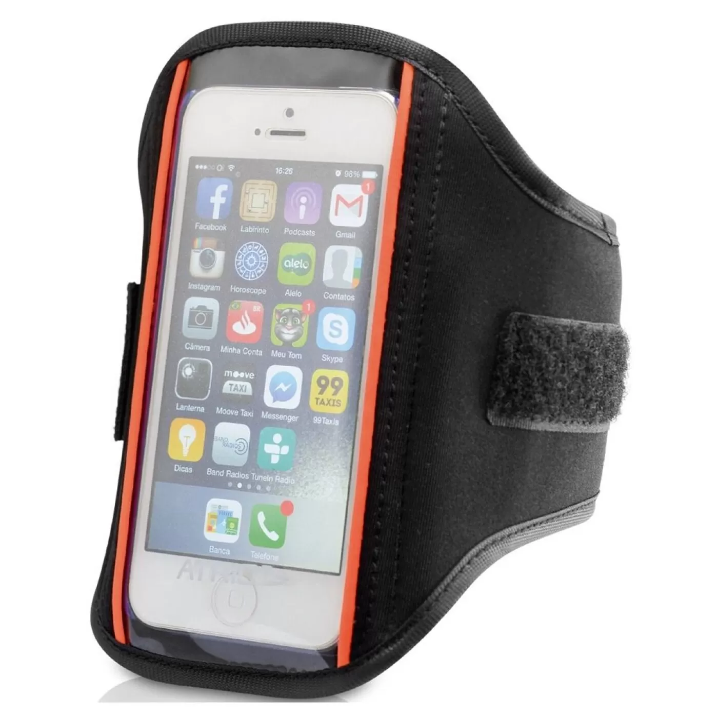 Consiste de uma pequena bolsa que fica confortável e firmemente presa a seu braço por meio de tiras elásticas que não causam incômodo algum em sua utilização. O fechamento da braçadeira é completamente seguro, portanto, nada vai simplesmente sumir da braçadeira mesmo com movimentos bruscos. Película que Permite Utilizar o Touchscreen da Tela