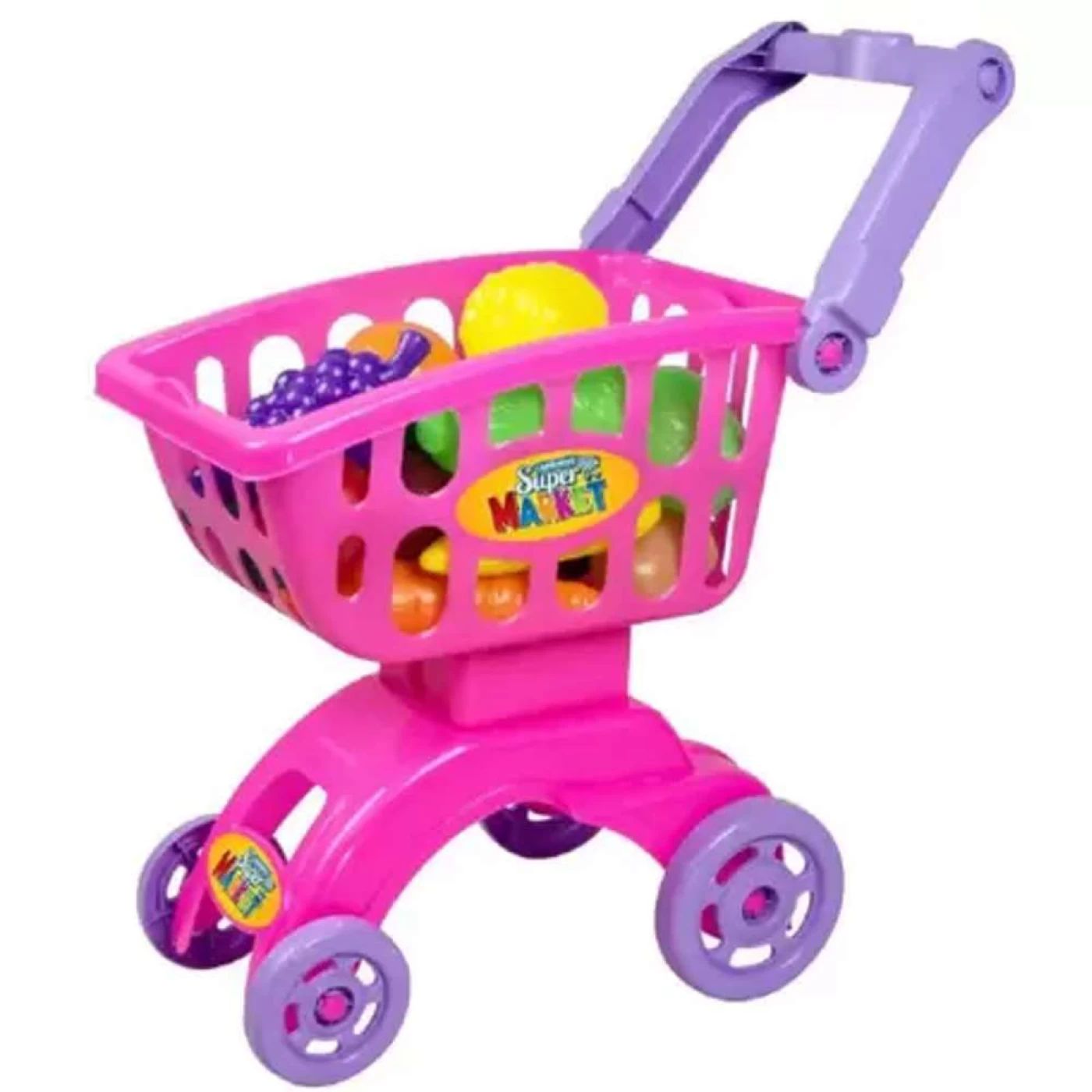 Carrinho de compras em plástico. Acompanha 18 peças entre frutas e legumes.Uma brincadeira que desenvolverá a imaginação, criatividade e fantasia.Brincar de ir ao mercado ficará mais divertido!Recomendado para crianças a partir de 04 anos.selo de segurança inmetro:ce-bri/iqb-5868 nm 300/2002 ocp 0006este brinquedo só deve ser entregue à criança, após ter sido montado por um adultotodas as crianças devem ter acompanhamento de adultos, enquanto estiverem brincando.