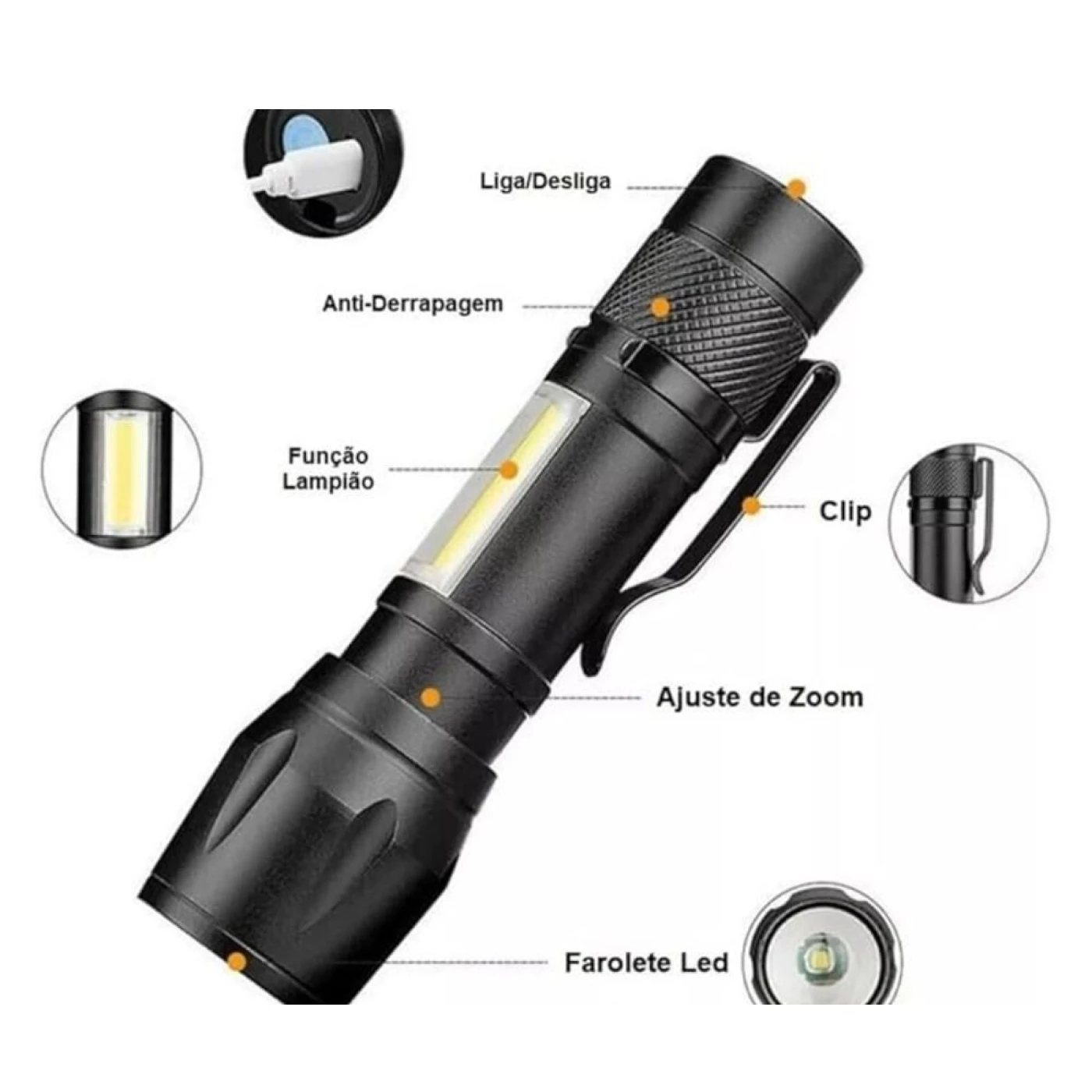 Equipada com bateria recarregável, ela dispensa o uso de pilhas e oferece excelente autonomia. Conta com diferentes modos de iluminação que se adaptam à necessidade do momento, como luz forte, média, fraca e estroboscópica (sinalização de emergência).