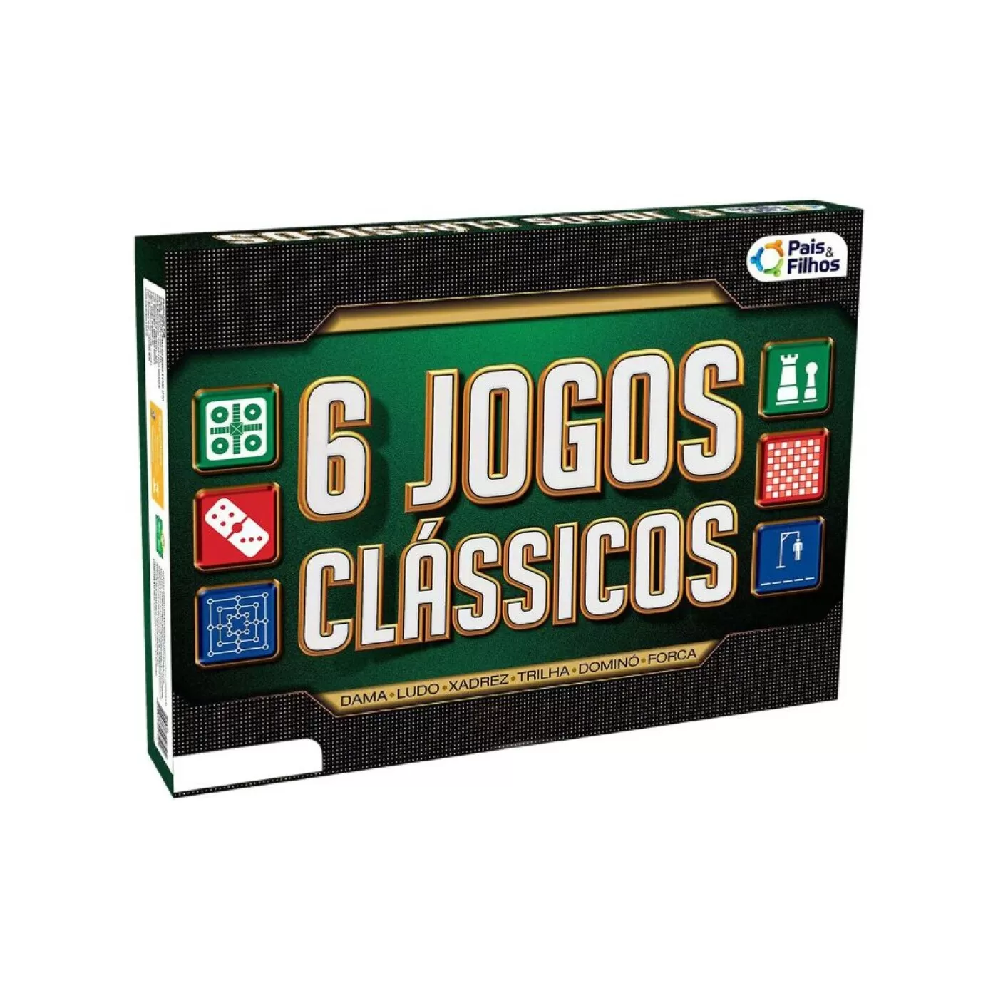 Jogo 6 Jogos Clássicos Tabuleiro. Este jogo é diversão garantida para toda a família, pois tem vários estilos diferentes, onde será possível você exercitar sua paciência, inteligência e criatividade, além de ser 6 jogos que fascinam seus jogadores.