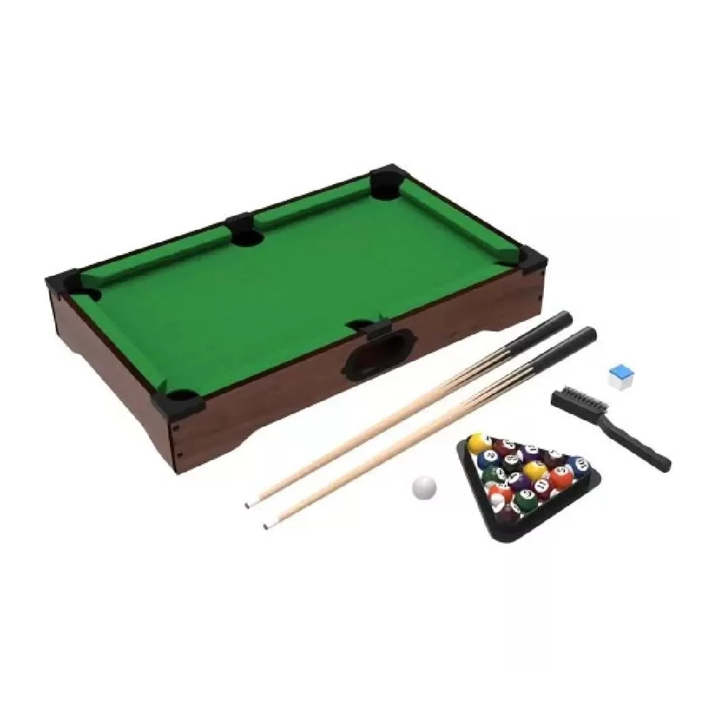 É possível praticar diferentes técnicas de tacada e aprimorar sua precisão e habilidades motoras, simulando jogar sinuca de verdade através de uma brincadeira segura e projetada para crianças. A mesa possui 50,5x30,5x8, é feita em madeira resistente e não requer montagem.