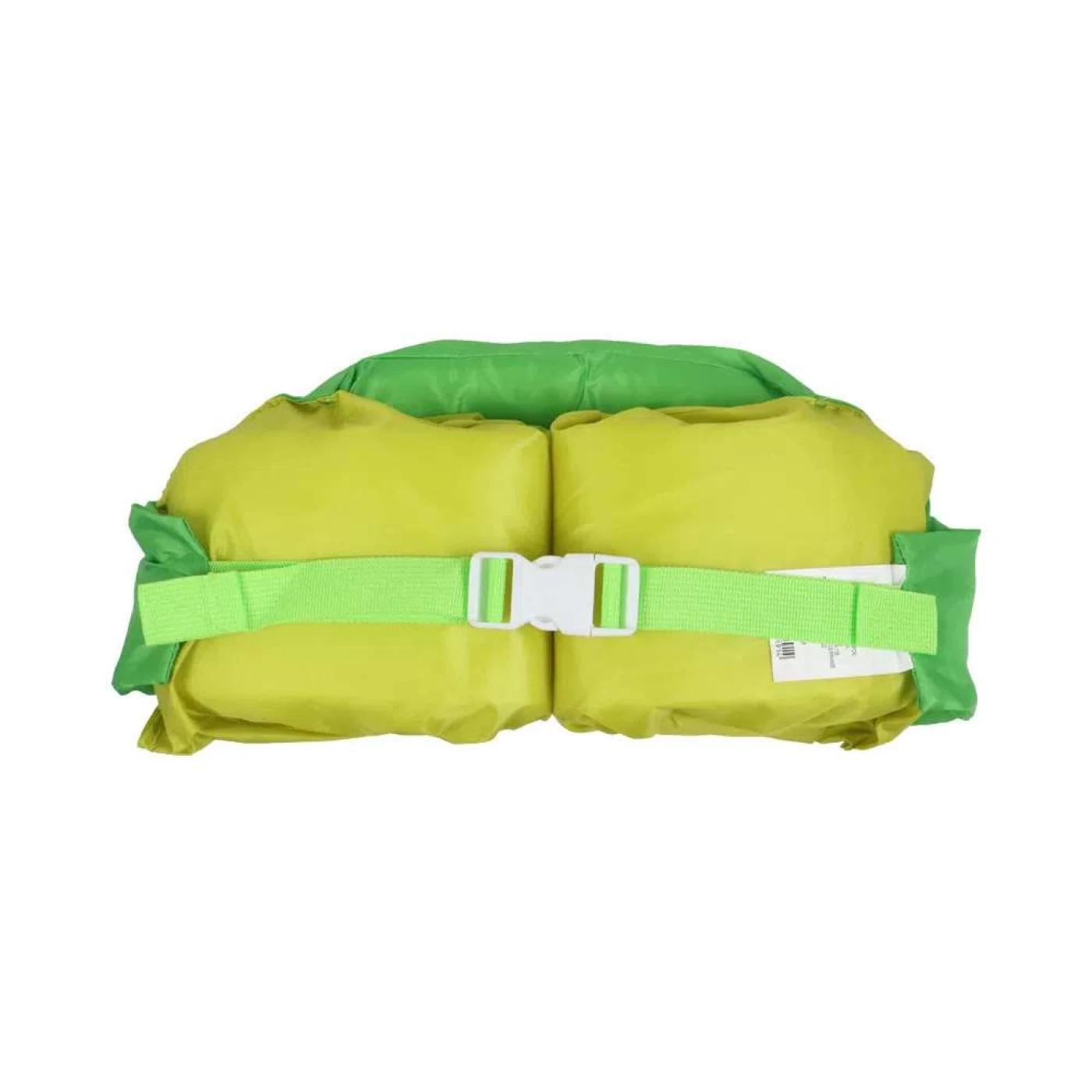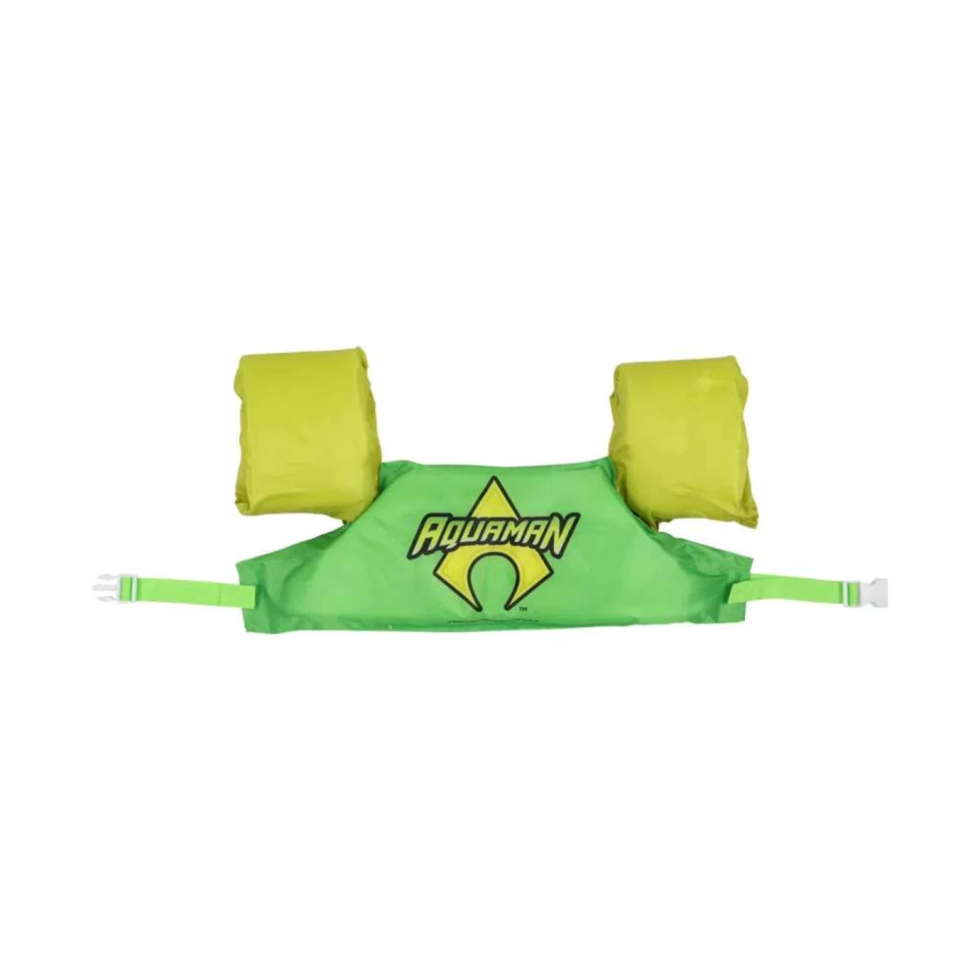 O colete infantil é uma bóia de corpo que prende nas costas da criança com um cinto (com sistema de trava). Possui também as bóias de braço acopladas ao corpo.
