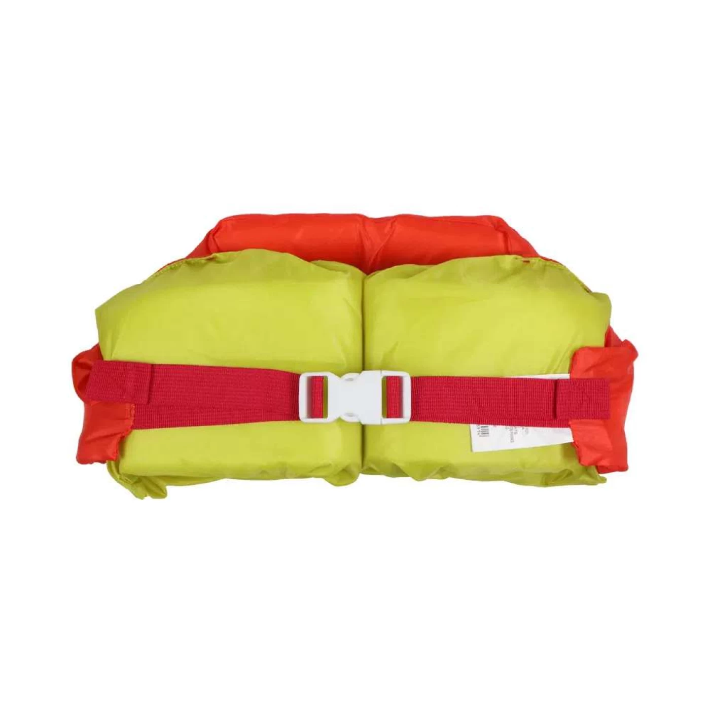 O colete infantil é uma bóia de corpo que prende nas costas da criança com um cinto (com sistema de trava). Possui também as bóias de braço acopladas ao corpo.