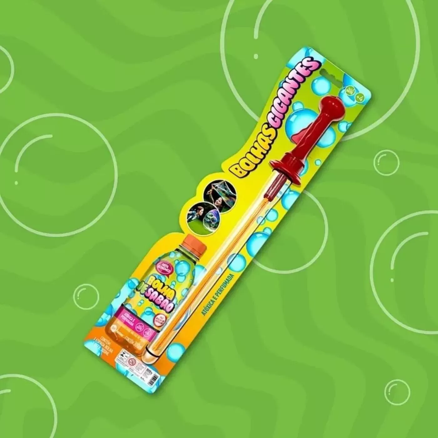 O Kit Espada e Refil para Bolha de Sabão 300ml possui líquido atóxico e perfumado, perfeitamente elaborado para que você faça bolhas de sabão incríveis, de diversos tamanhos, inclusive as gigantes.