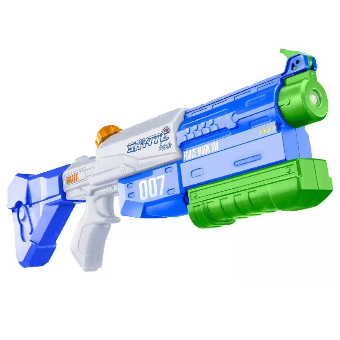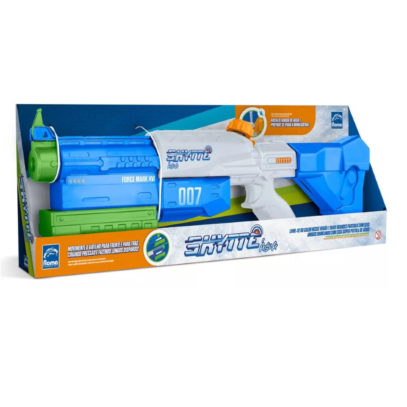 A diversão está garantida e simples para qualquer criança , encha o tanque de água e movimente o gatilho para frente e para trás criando pressão fazendo longos disparos de água.
