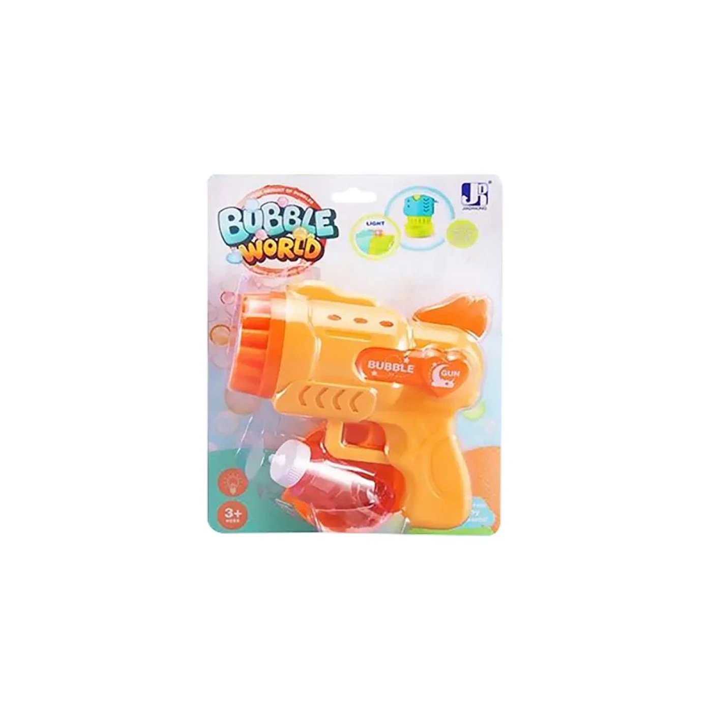 Alimentado por 4 pilhas AA (não incluídas), este lançador também possui uma luz que se acende sempre que as bolhas são disparadas, adicionando um toque mágico a cada brincadeira.