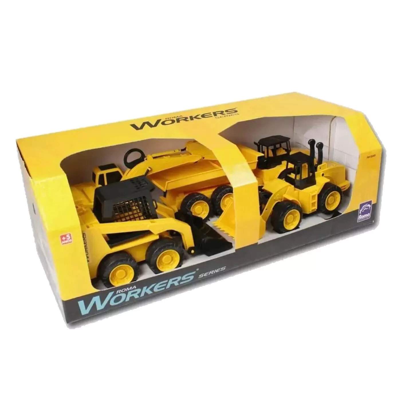 O Roma Workers Series é um super kit que inclui os tratores Carregadeira Workers, Escavadeira Workers, Bob Workers e o Caminhão Fora da Estrada Workers, com eles você poderá usar muita imaginação.