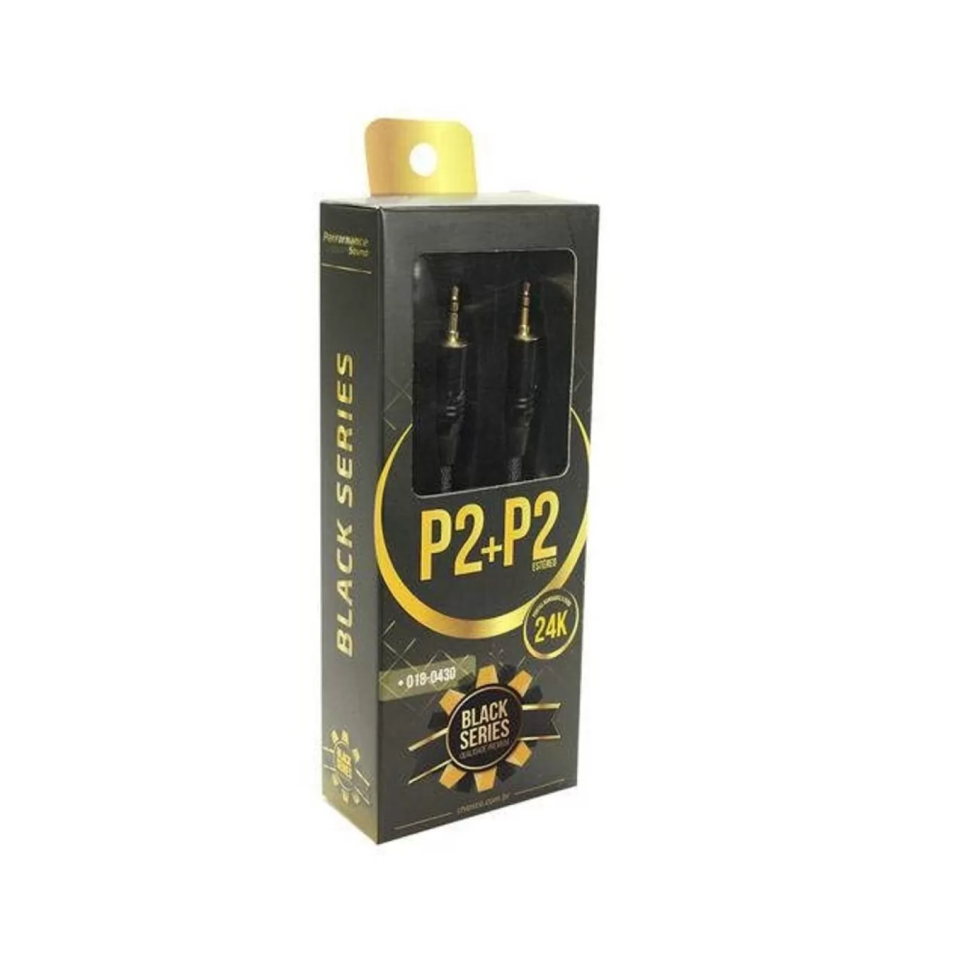 O cabo p2 black series é produzido com condutor 100% cobre, plugs metálicos com ponta gold, revestidos com malha em nylon de alta resistência.